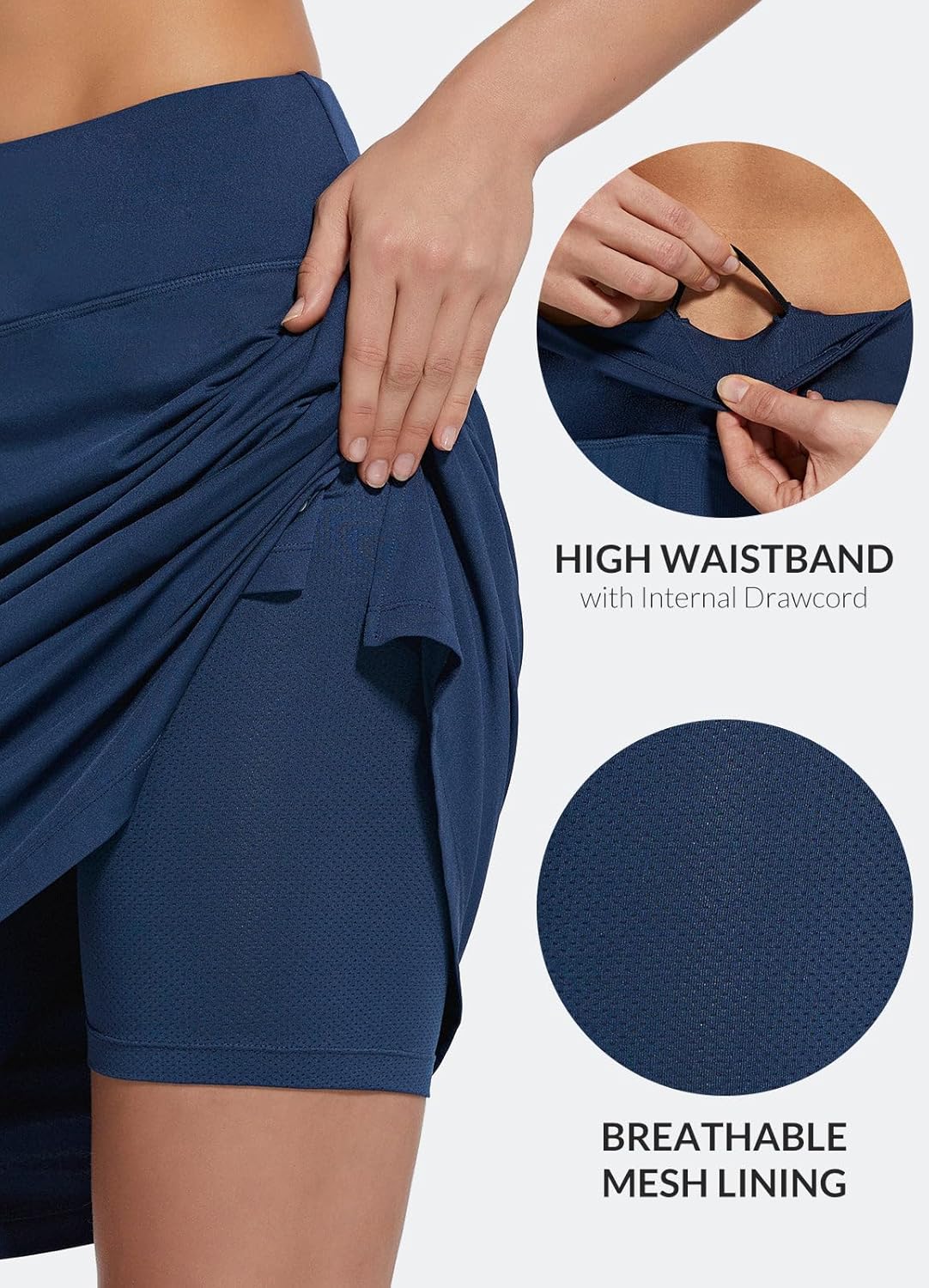 - Rocklänge: 50-53cm Knielänge bietet mehr Schutz, was bescheiden und bequem ist. Eingebaute Mesh-Liner-Shorts:17 cml, um Ihren Sport ohne Sorgen zu geniessen, nicht durchsichtig und nicht rollend und atmungsaktiv.