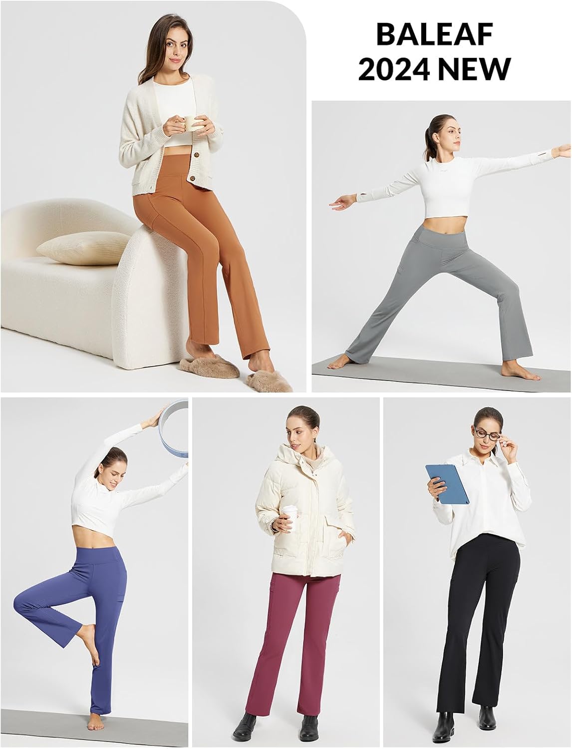 baleaf Damen Thermohosen mit Taschen Flare Leggings Hohe Taille Bootcut Thermo Leggings Sweatpants W