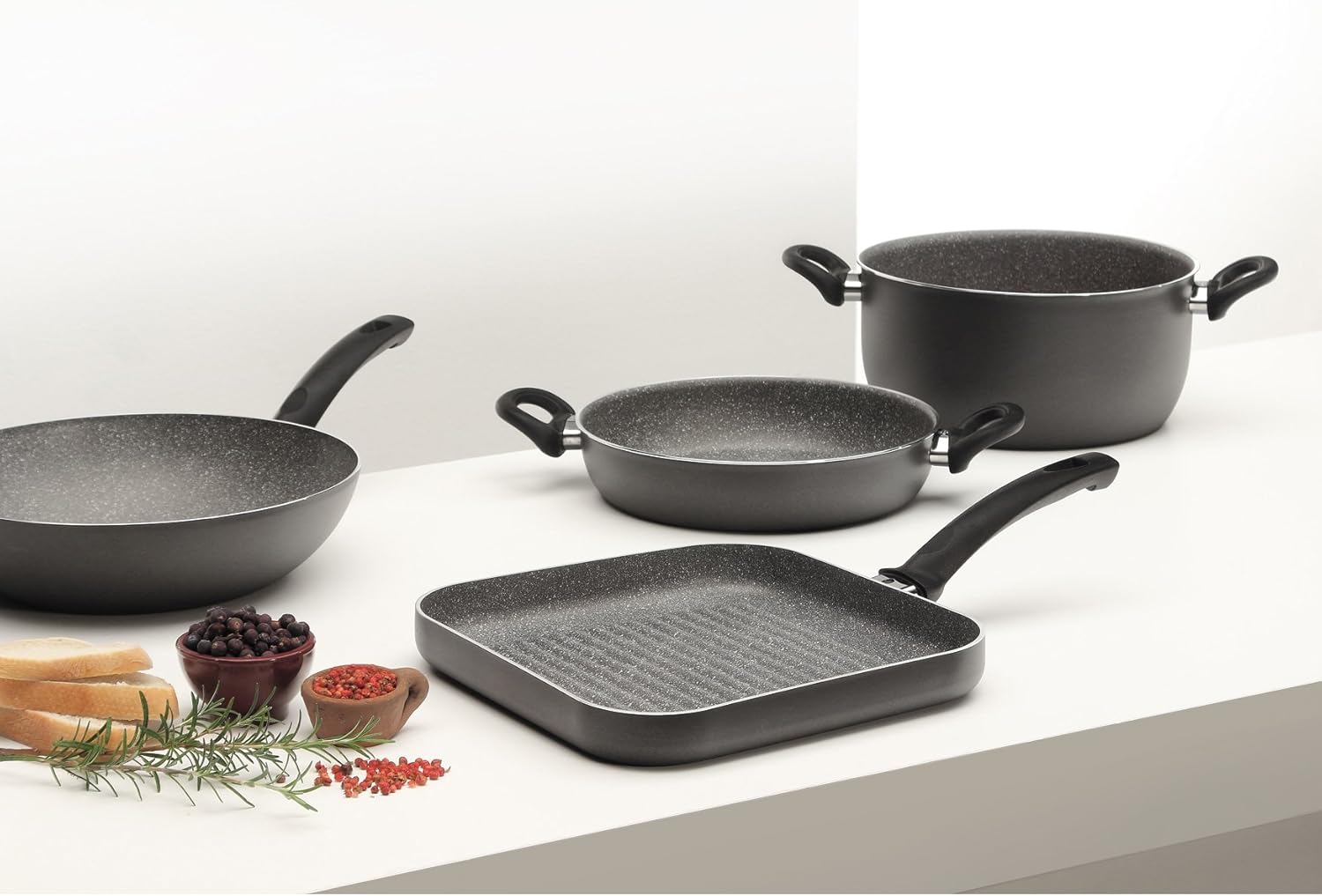 - Antihaftbeschichtet: Die Bratpfanne verfügt über eine 5-fache Granitium Antihaftbeschichtung. Durch wenig Zusatz von Öl oder Fett ist so gesundes Kochen möglich