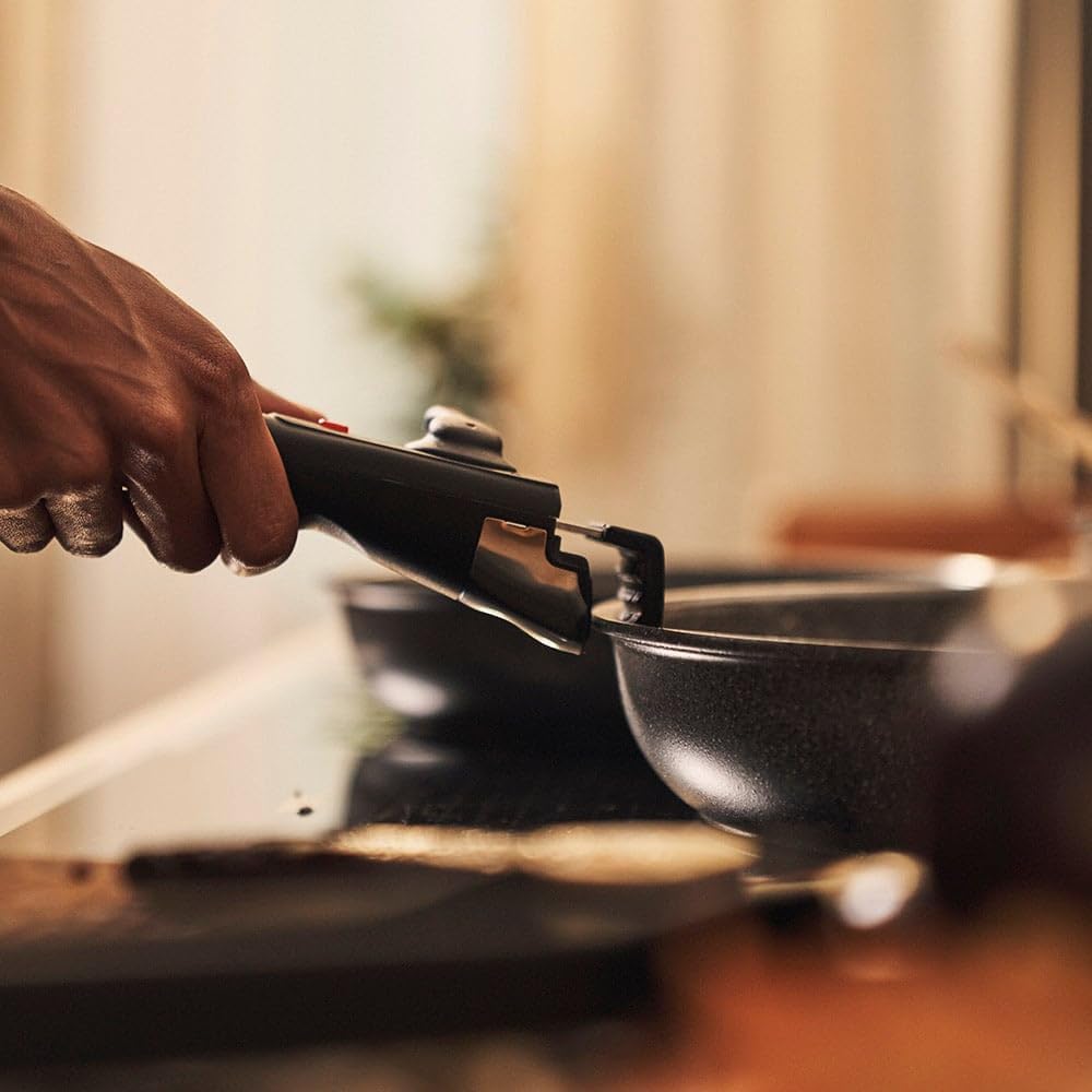 - MULTIFUNKTIONAL: Mit nur einem Griff können Sie mehrere Pfannen verwenden, was nicht nur praktisch, sondern auch nachhaltig ist. Egal ob die Pfannen auf dem Induktionsherd, im Backofen bis 230°C oder im Kühlschrank sind. Sowohl der Griff als auch die