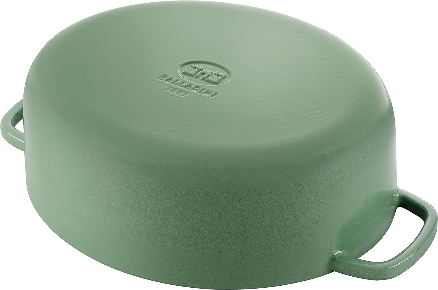 - LIEFERUMFANG: BALLARINI BELLAMONTE Cocotte 6,5 Liter, grün, oval, spülmaschinengeeignet, Ø 33 cm, H 16,7 cm, Gusseisen, Beschichtung: Kratzfeste Emaille, alle Herdarten, max. -20°/240° C, 1023125.