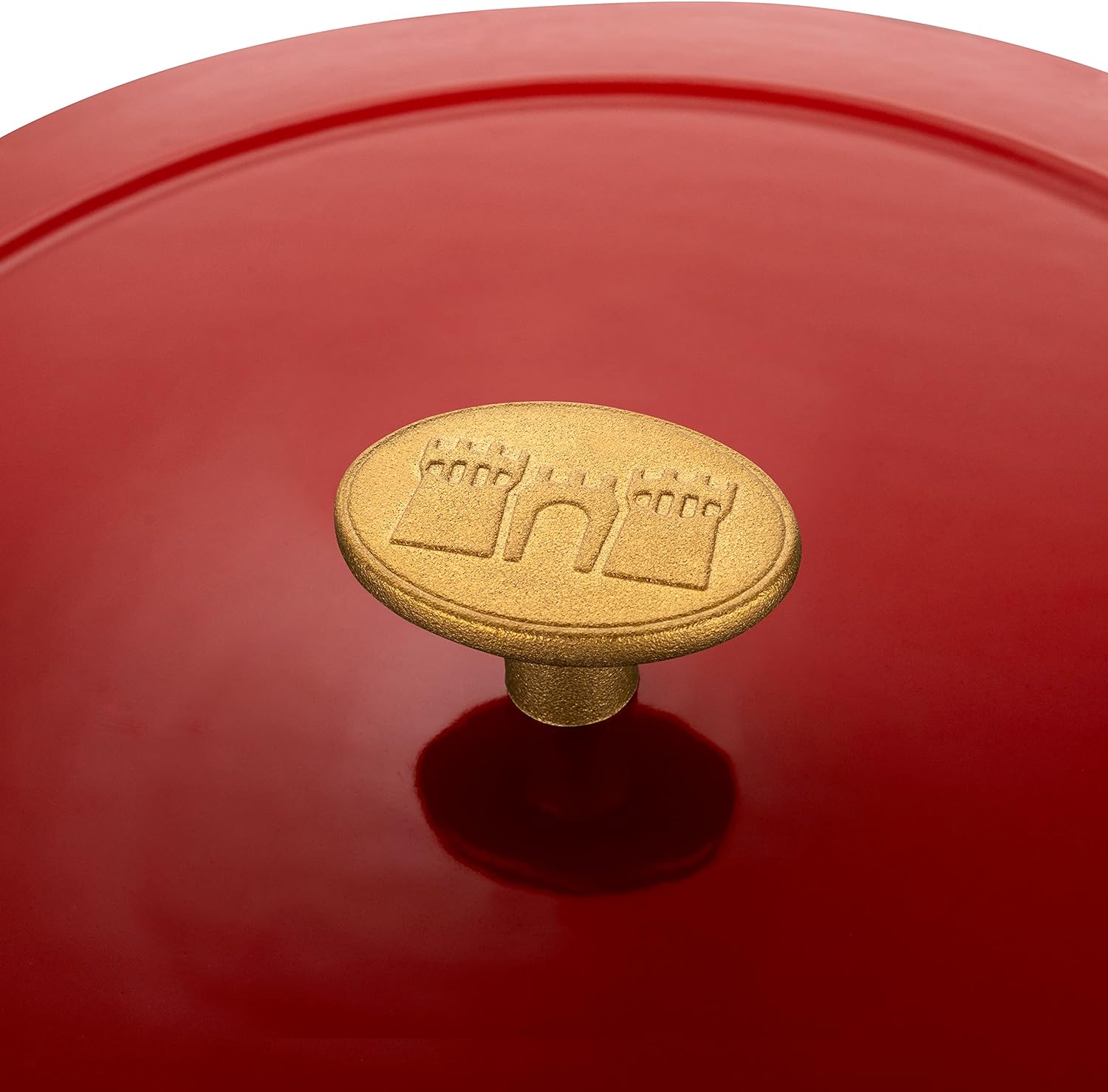- LIEFERUMFANG: BALLARINI BELLAMONTE Cocotte 7 Liter, rot, rund, spülmaschinengeeignet, Ø 28 cm, H 18,7 cm, Gusseisen, Beschichtung: Kratzfeste Emaille, alle Herdarten, max. -20°/240° C, 1023096.