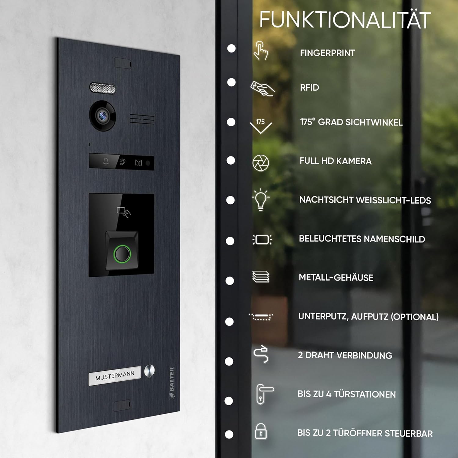 - FINGERPRINT UND RFID - Die EVO HD Video Türsprechanlage bietet durch integrierte Fingerprint- und RFID-Module zusätzliche Sicherheit und Komfort. Öffnen Sie Ihre Tür schnell und sicher ohne Schlüssel, einfach mit Ihrem Fingerabdruck oder RFID-Karte.