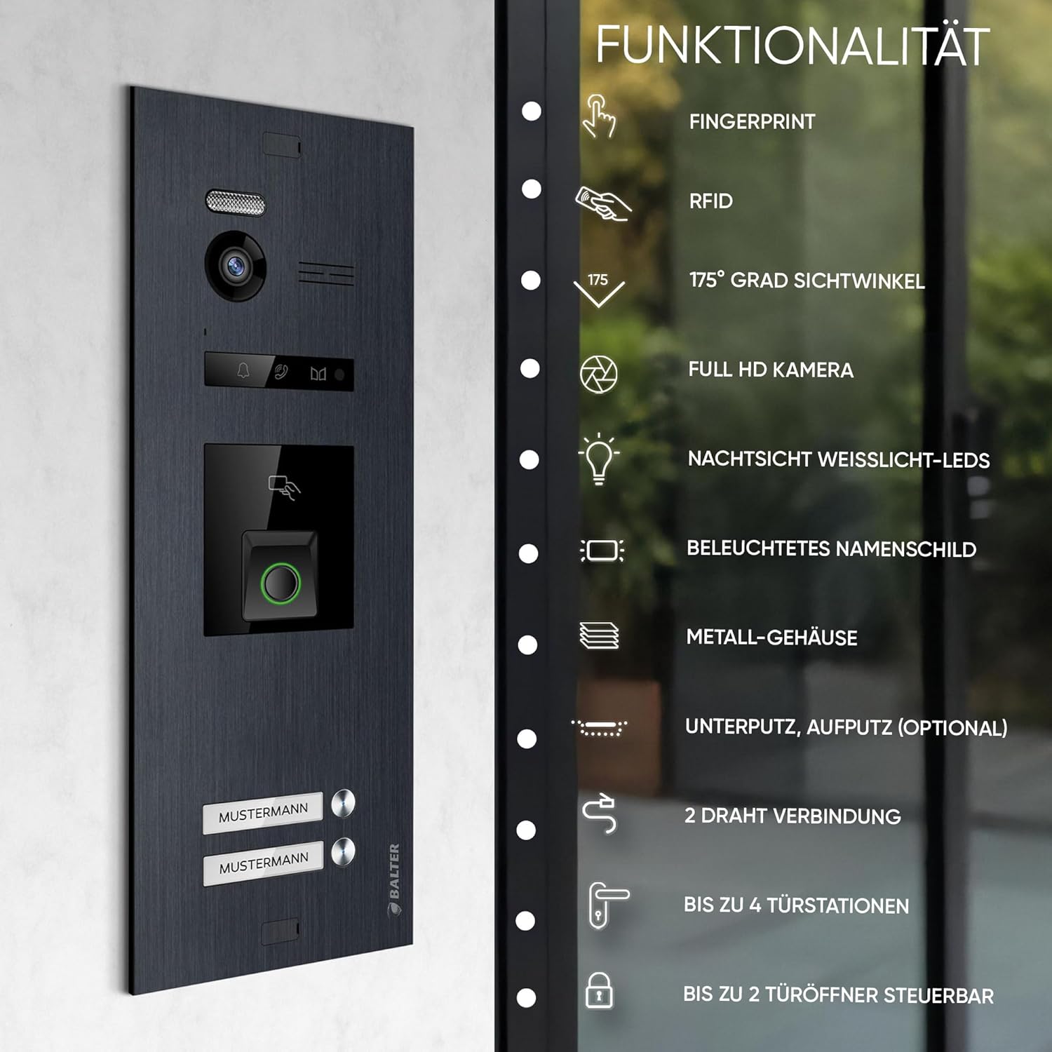 - FINGERPRINT UND RFID - Die EVO HD Video Türsprechanlage bietet durch integrierte Fingerprint- und RFID-Module zusätzliche Sicherheit und Komfort. Öffnen Sie Ihre Tür schnell und sicher ohne Schlüssel, einfach mit Ihrem Fingerabdruck oder RFID-Karte.