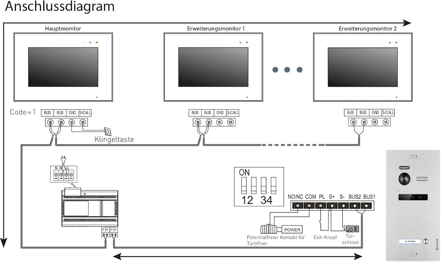 - ✔ MODERNE 2-DRAHT-BUS-TECHNIK I FÜR SCHNELLE INSTALLATION - Mit der top aktuellen 2-Draht-BUS-Technologie genügen nur 2 Drähte, um gleichzeitig Video, Audio und Strom zu übertragen. So ist Ihre neue EVO Video Klingelanlage im Handumdrehen