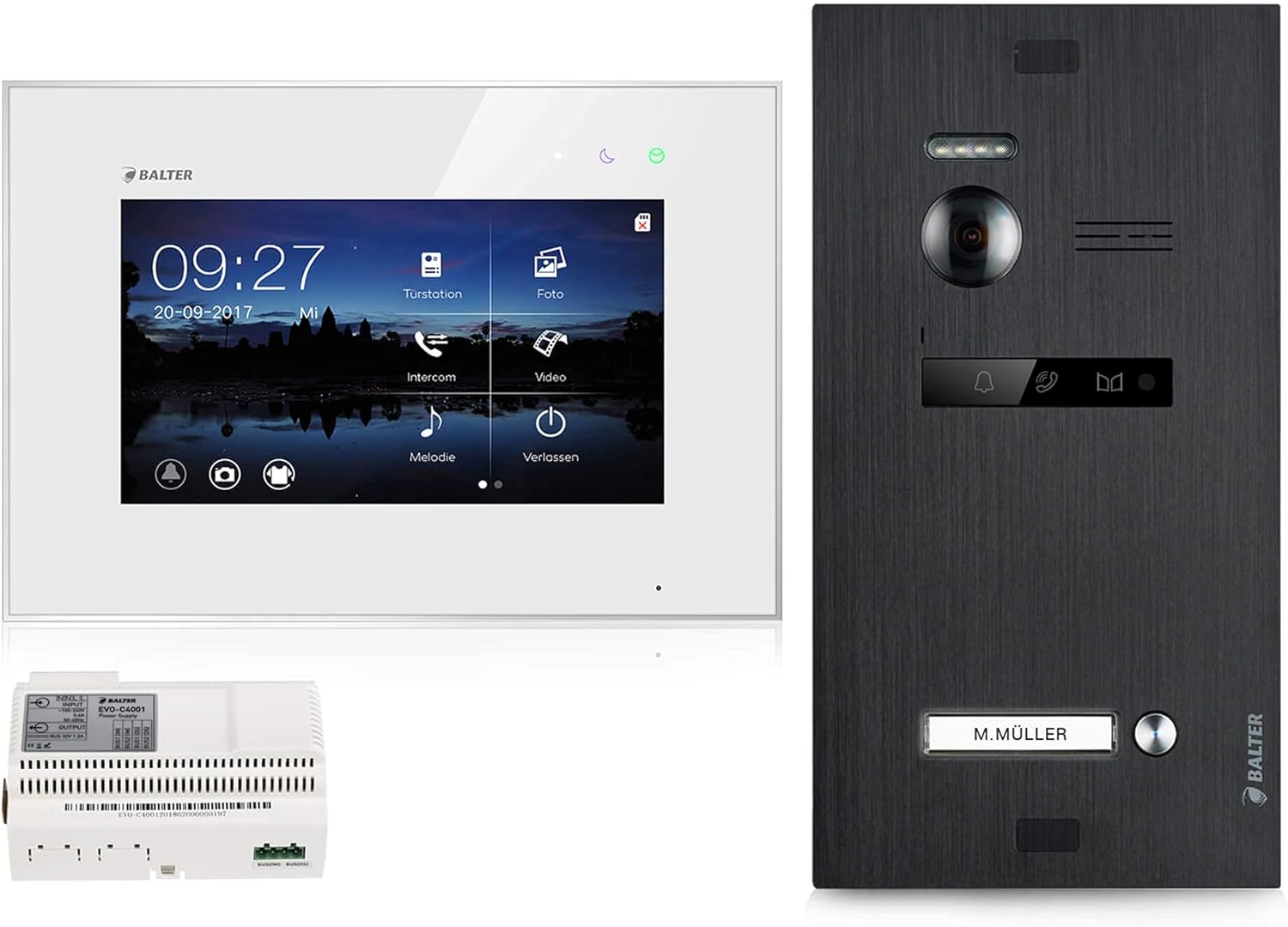 - ✔ KOMPLETTSET FÜR 1 Familienhaus: Mit diesem Komplettset rüsten Sie Ihr Einfamilienhaus im Handumdrehen mit einer leistungsstarken Video Türsprechanlage aus. Das EVO Komplettpaket besteht aus zwei 7“ Monitore mit Touchscreen-Display, einer zeitlos