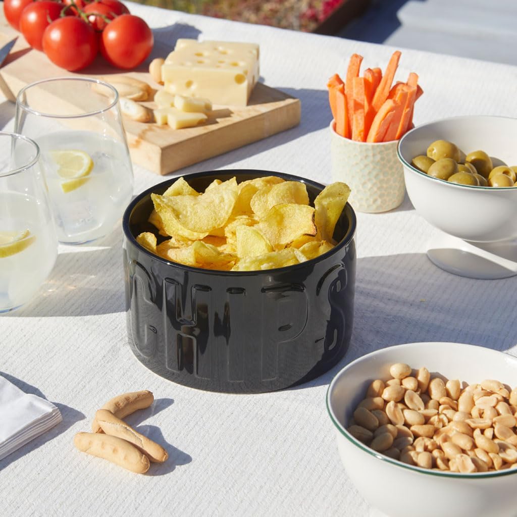 - FUNKTIONELL. Die Grösse ist ideal, um alle Kartoffelchips eines handelsüblichen Beutels aufzunehmen, obschon die Schale auch mit anderen Arten von Snacks gefüllt werden kann. Spülmaschinenfest und mikrowellengeeignet. Fassungsvermögen 1 Liter.