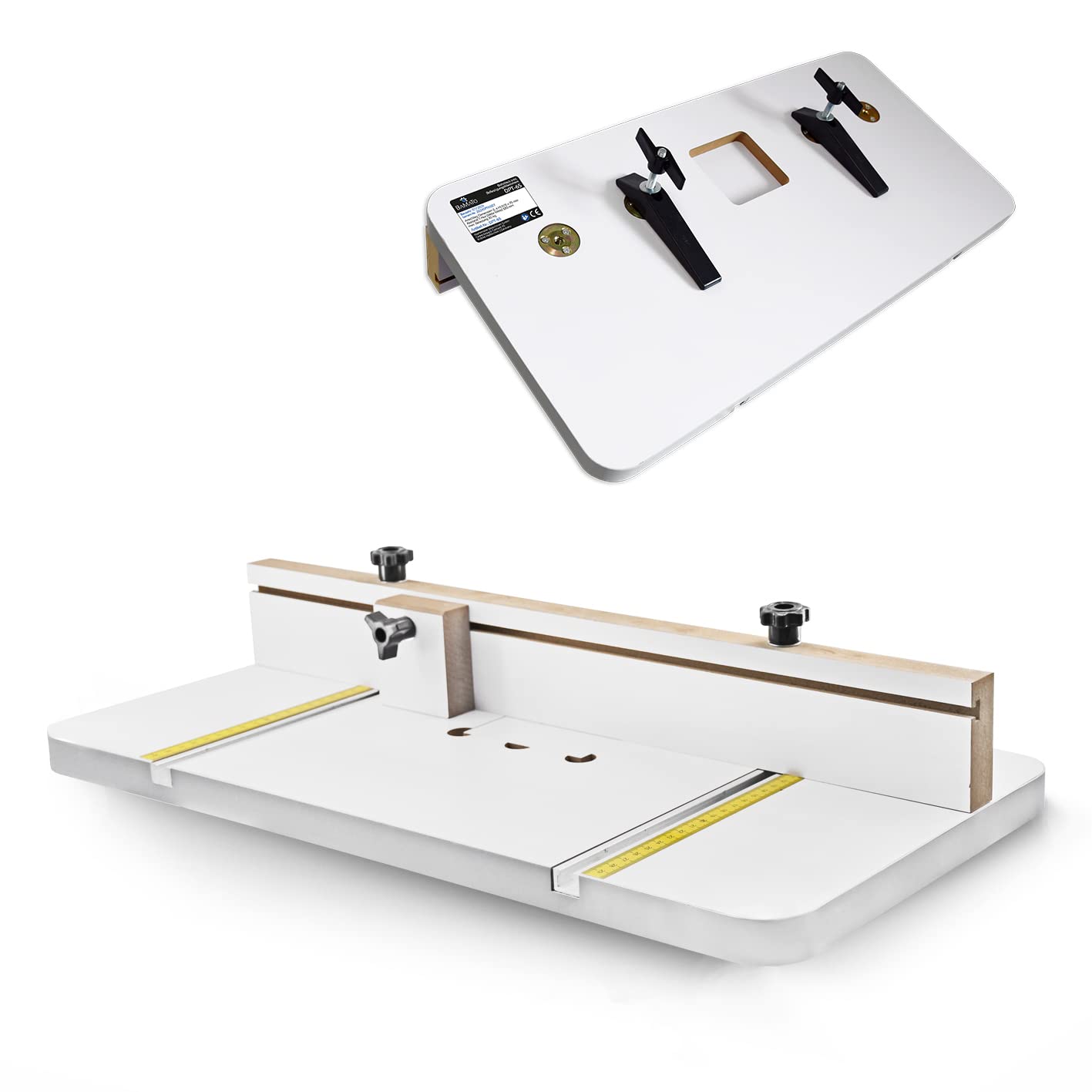 - inkl. 2 Anschläge, die aneinander oder am Bohrtisch befestigt werden können