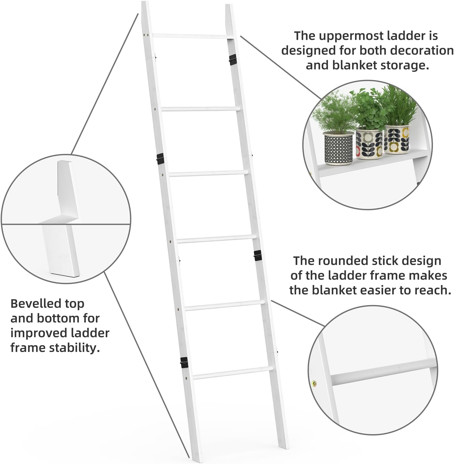 - Grosszügige Stauraumlösung: Mit 6 robusten Sprossen bietet die Leiter reichlich Ablagefläche. Ideal zum Aufhängen mehrerer Handtücher, zur Präsentation von Decken, Schals oder als schicker Kleiderständer für tägliche Outfits.