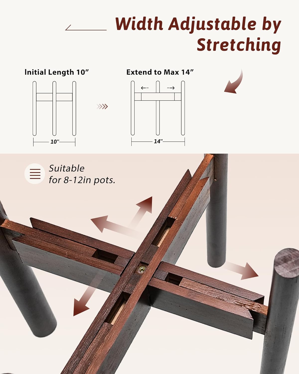 - Verstellbarer Pflanzenständer:Einstellbarer Durchmesserbereich 20cm-30cm, Produkthöhe 36cm,Dieser Bambus-Pflanzenständer kann durch Dehnen in der Breite verstellt werden, um unterschiedlich grosse Pflanzgefässe aufzunehmen.