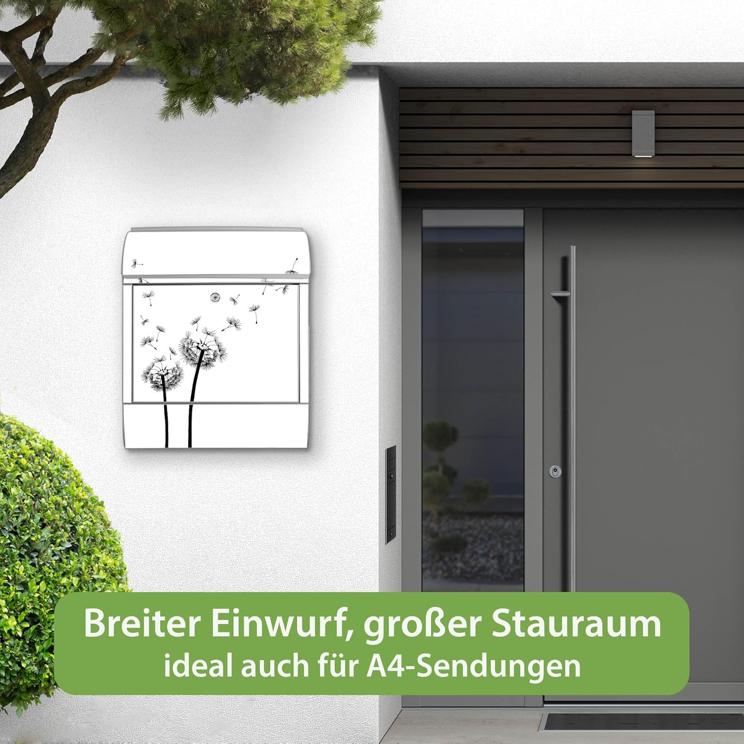 - FUNKTIONALITÄT: Der banjado Briefkasten mit Zeitungsfach bietet Ihnen Dank seines grossen Fassungsvermögens genügend Platz, auch für grosse A4 Sendungen. Zusätzlich eignet sich die Zeitungsrolle hervorragend für die Tageszeitung.