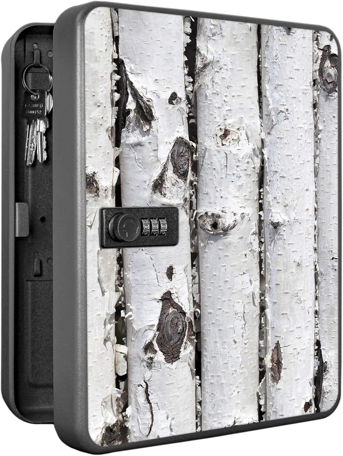 banjado® Burg-Wächter® abschliessbarer Schlüsselkasten mit Motiv Birkenrinde für 36 Schlüssel - Schl