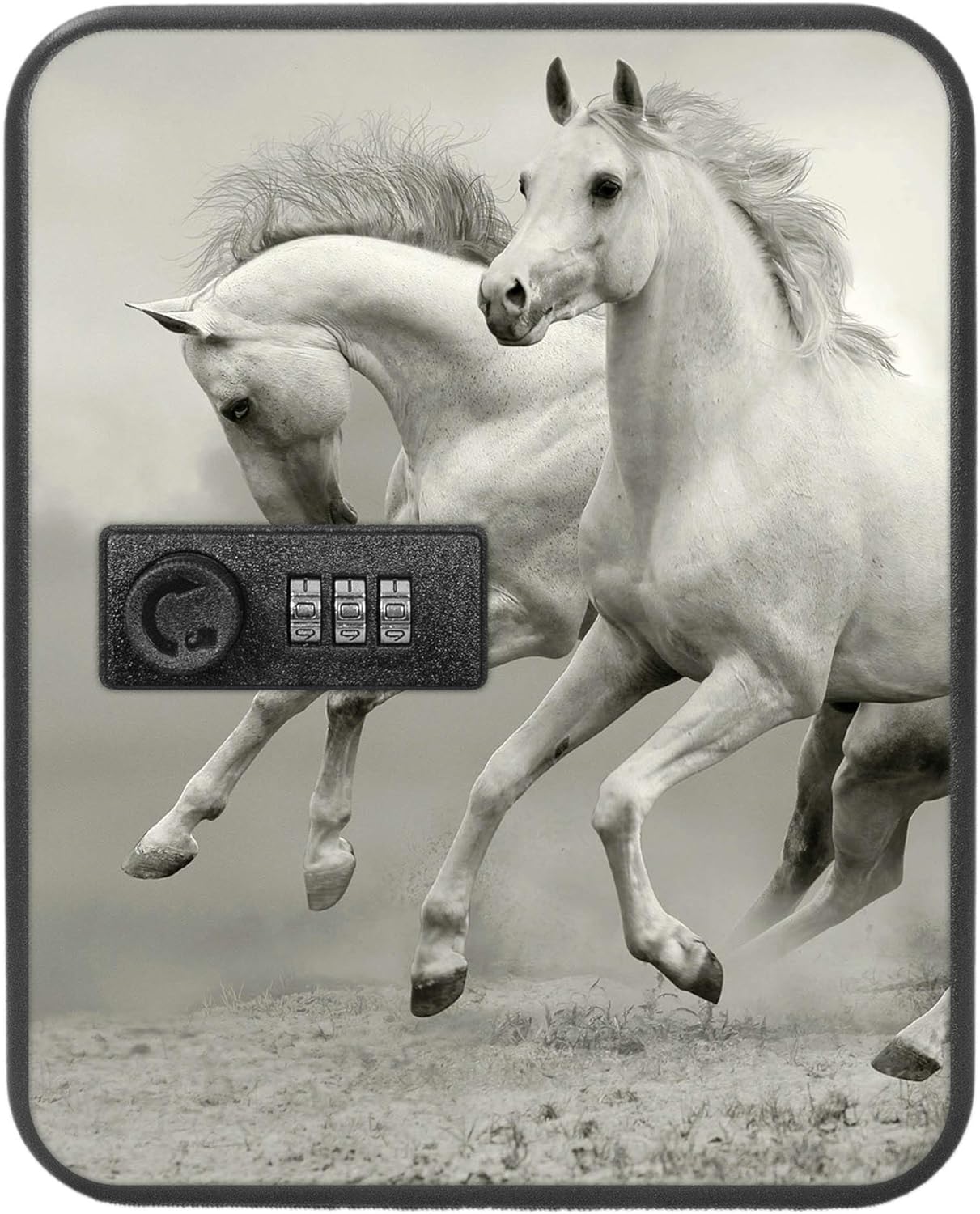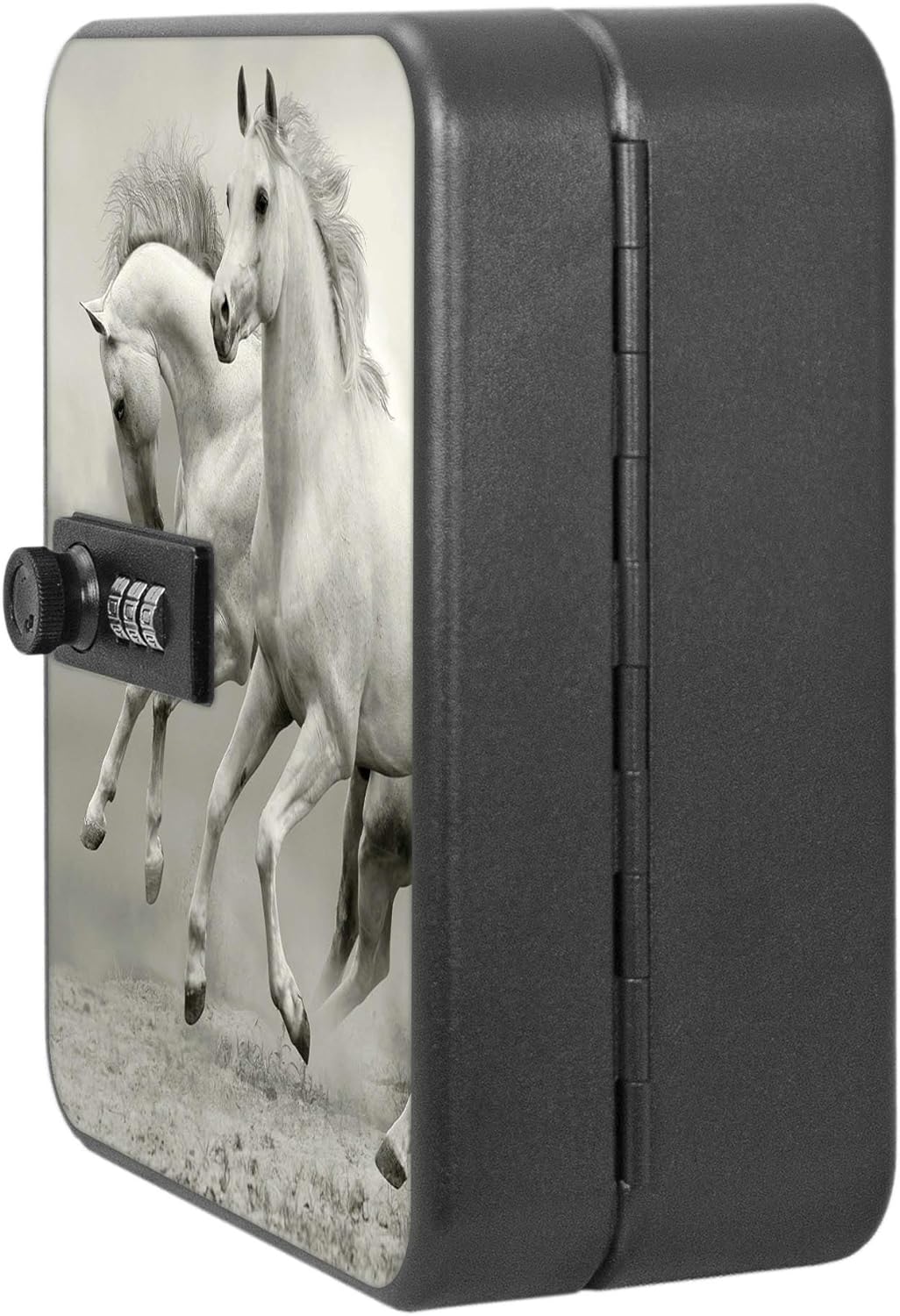 banjado® Burg-Wächter® abschliessbarer Schlüsselkasten mit Motiv Wilde Pferde SW für 20 Schlüssel -
