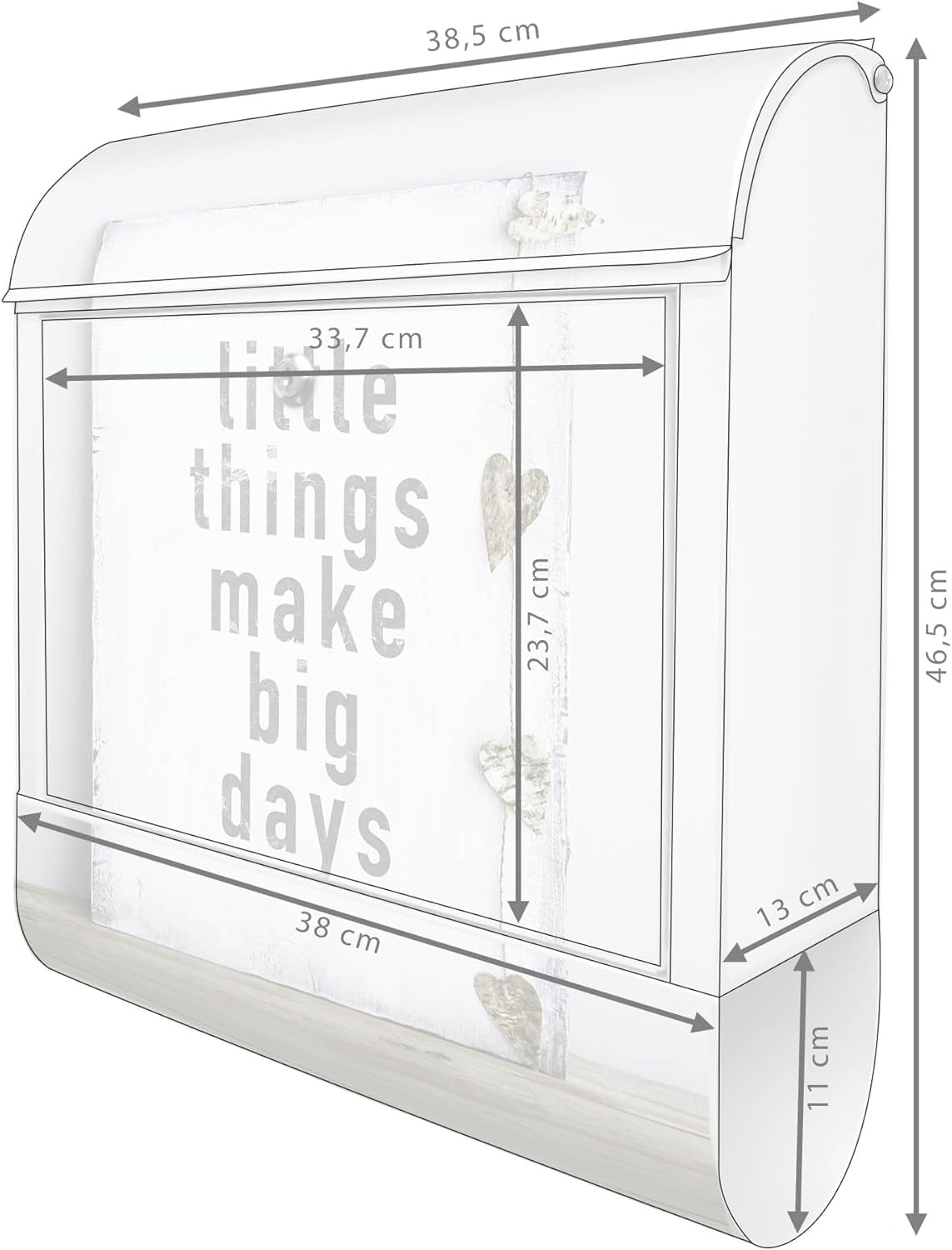 - DETAILS: Der Postkasten personalisiert aus pulverbeschichtetem Stahl sind 39x47x14cm gross. Das Motiv besteht aus einer wetter- und UV-resistenten Folie, die mit einem Schutzlaminat überzogen ist. Montagematerial und zwei Schlüssel sind im Lieferumfang.