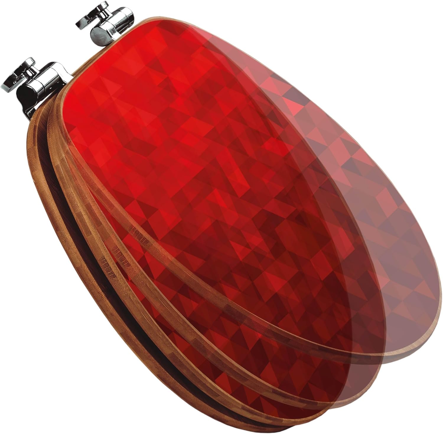 banjado® Design WC Sitz Bambus Absenkautomatik mit Motiv Dreiecke Rot/Toilettendeckel mit Absenkauto