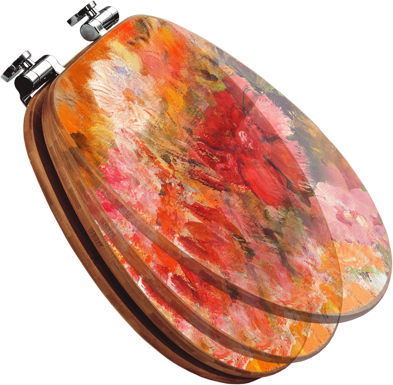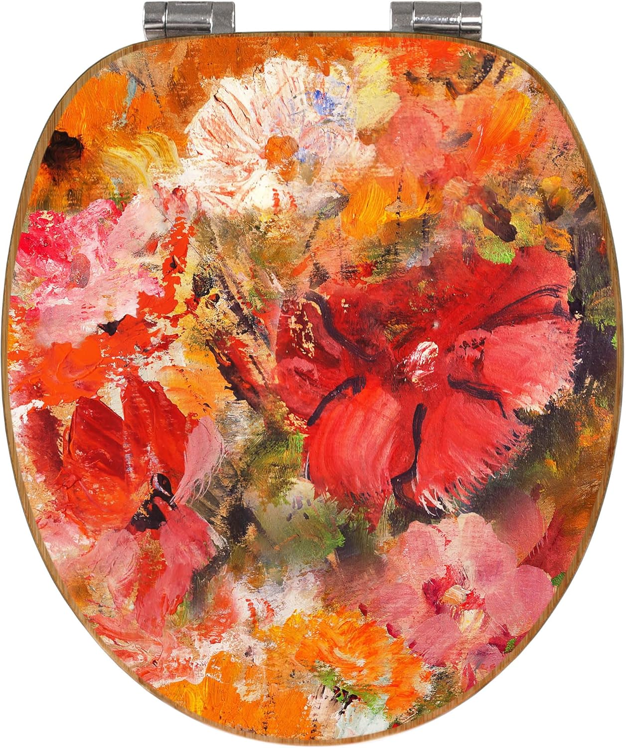 banjado® Design WC Sitz Bambus Absenkautomatik mit Motiv Fallende Blumen/Toilettendeckel mit Absenka