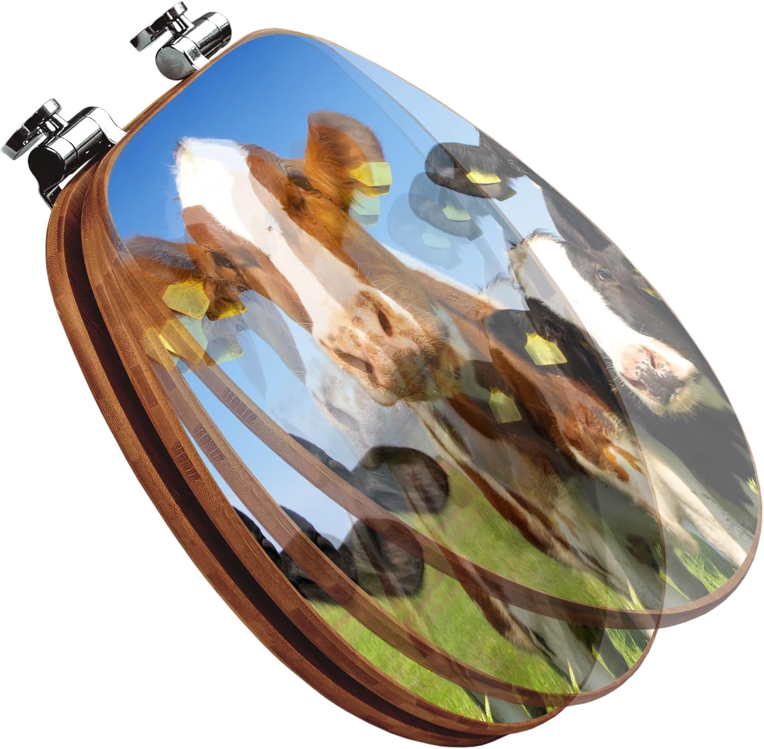 banjado® Design WC Sitz Bambus Absenkautomatik mit Motiv Kühe/Toilettendeckel mit Absenkautomatik Ho