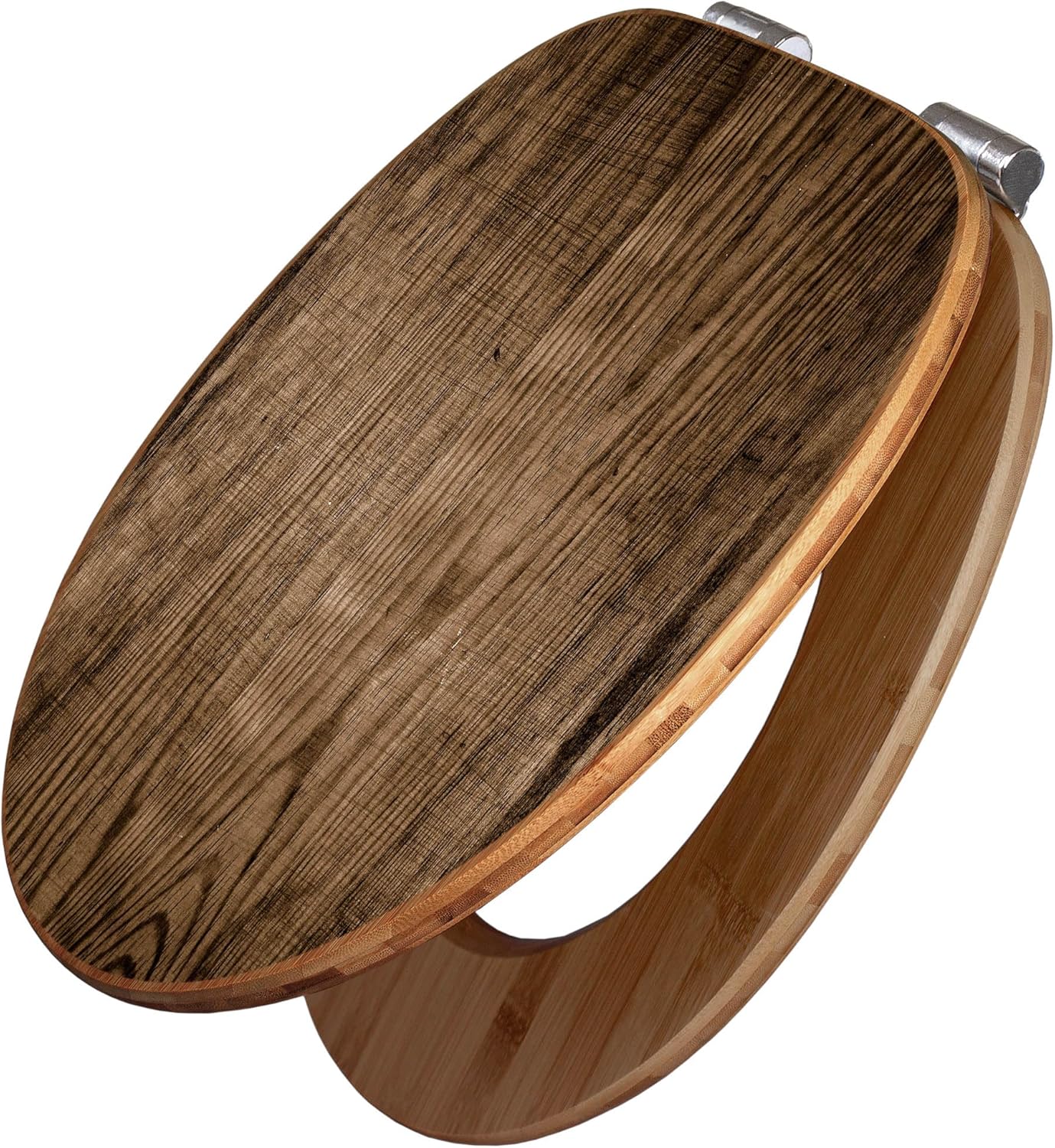 banjado® Design WC Sitz Bambus Absenkautomatik mit Motiv Maserung Dunkel/Toilettendeckel mit Absenka