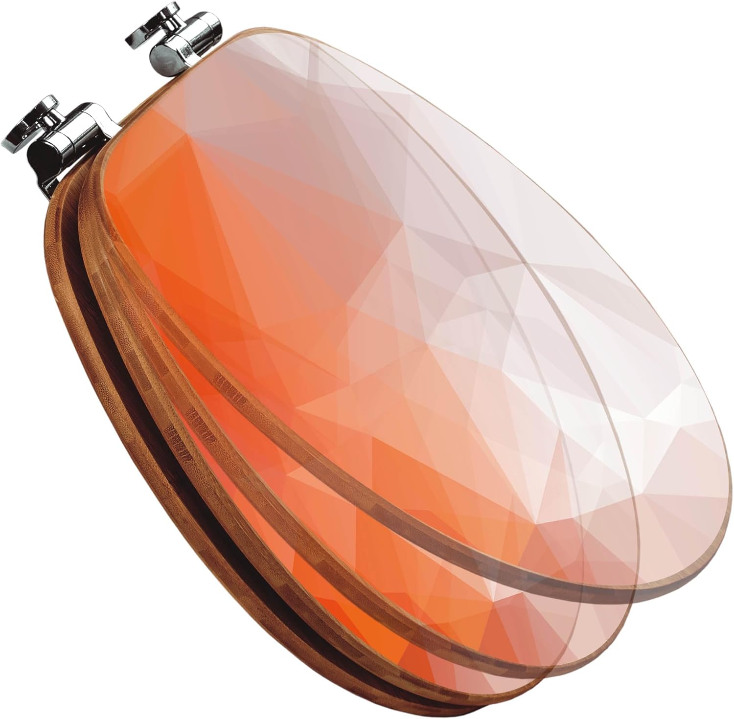 banjado® Design WC Sitz Bambus Absenkautomatik mit Motiv Orange Polygon/Toilettendeckel mit Absenkau
