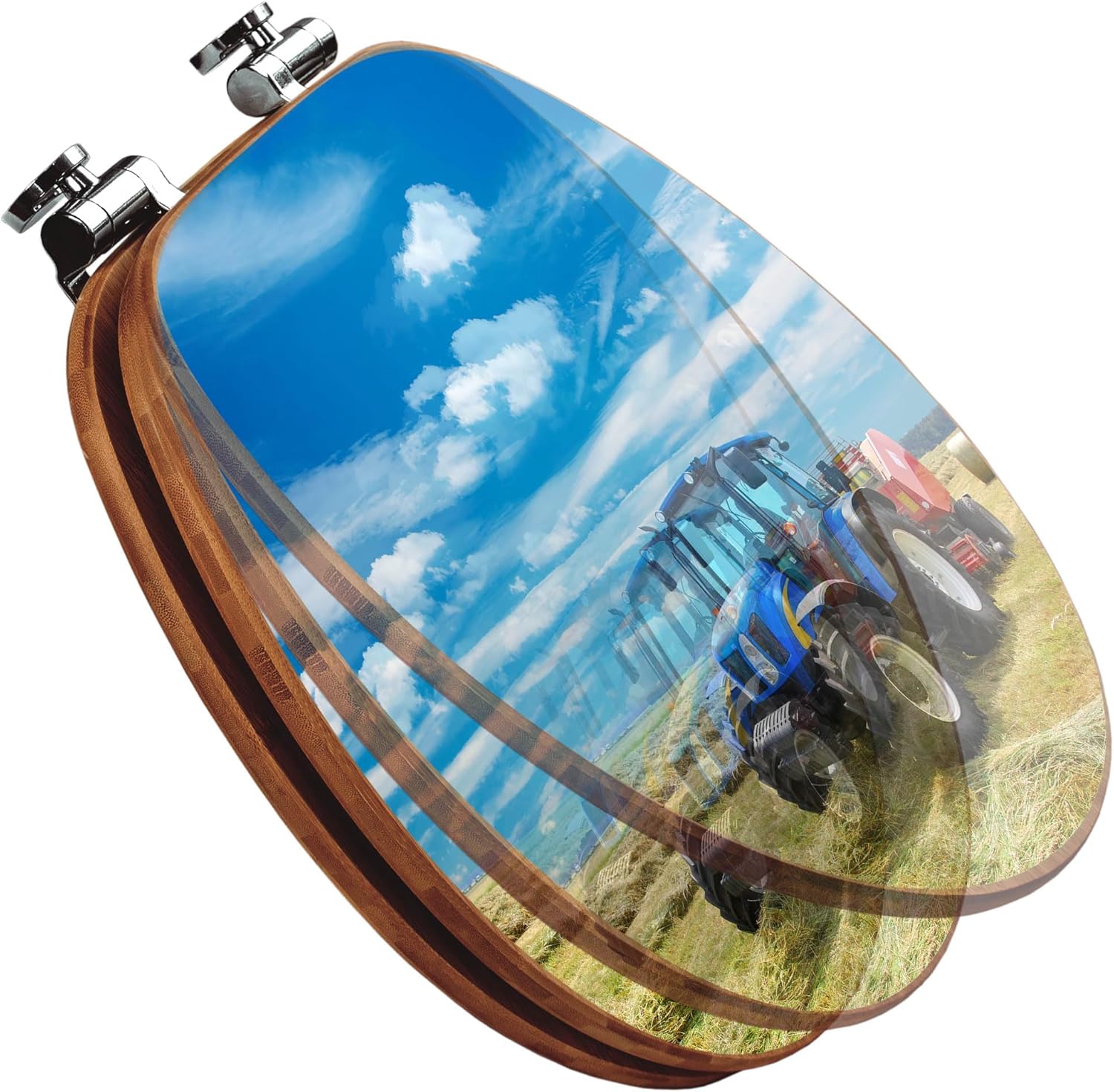 banjado® Design WC Sitz Bambus Absenkautomatik mit Motiv Traktor/Toilettendeckel mit Absenkautomatik