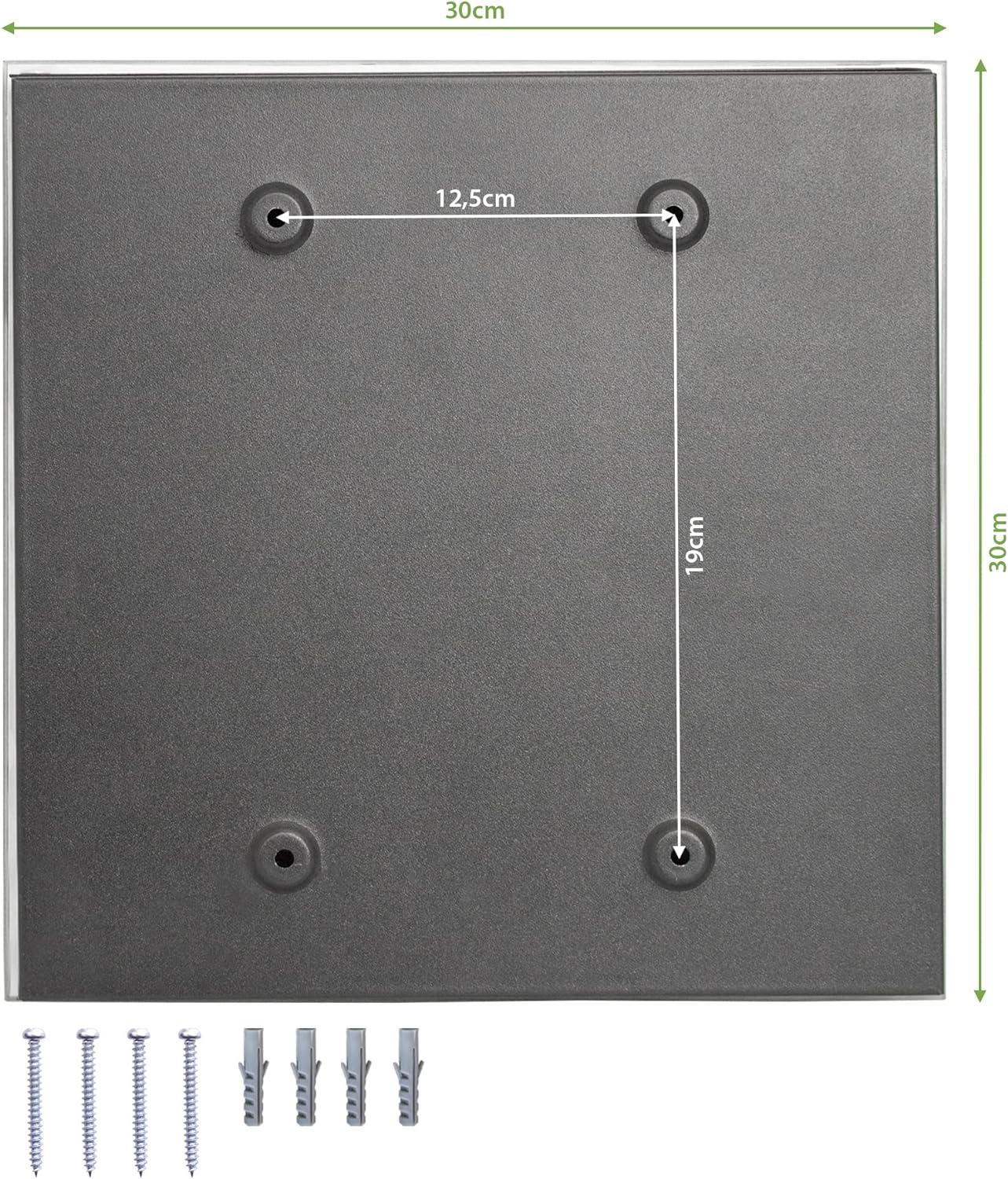 - DETAILS - Die Schlüssel Box ist 30x30cm gross und 5cm tief. Für einen sicheren Halt und eine problemlose Schlüssel Aufbewahrung erfolgt die Aufhängung an 4 Stellen in der Rückseite, das Montagematerial fügen wir bei.