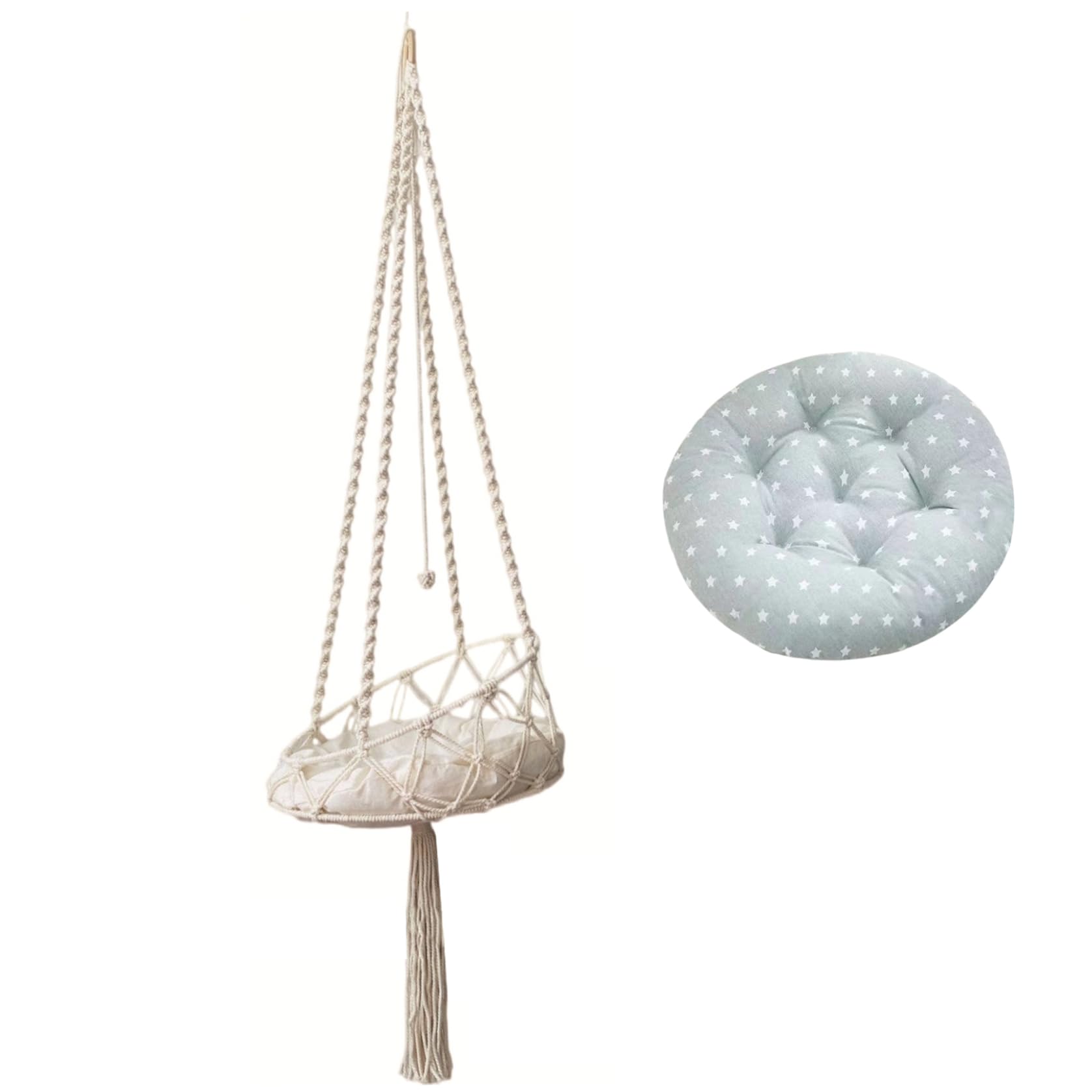 - Boho Macrame Design: The Cat Swing bietet ein Boho -Macrame -Design, das Ihrem Heimdekor einen Hauch von Stil und Eleganz verleiht..Diese Funktion stellt sicher, dass die Hängematte nicht nur funktional, sondern auch visuell ansprechend ist, was es zu