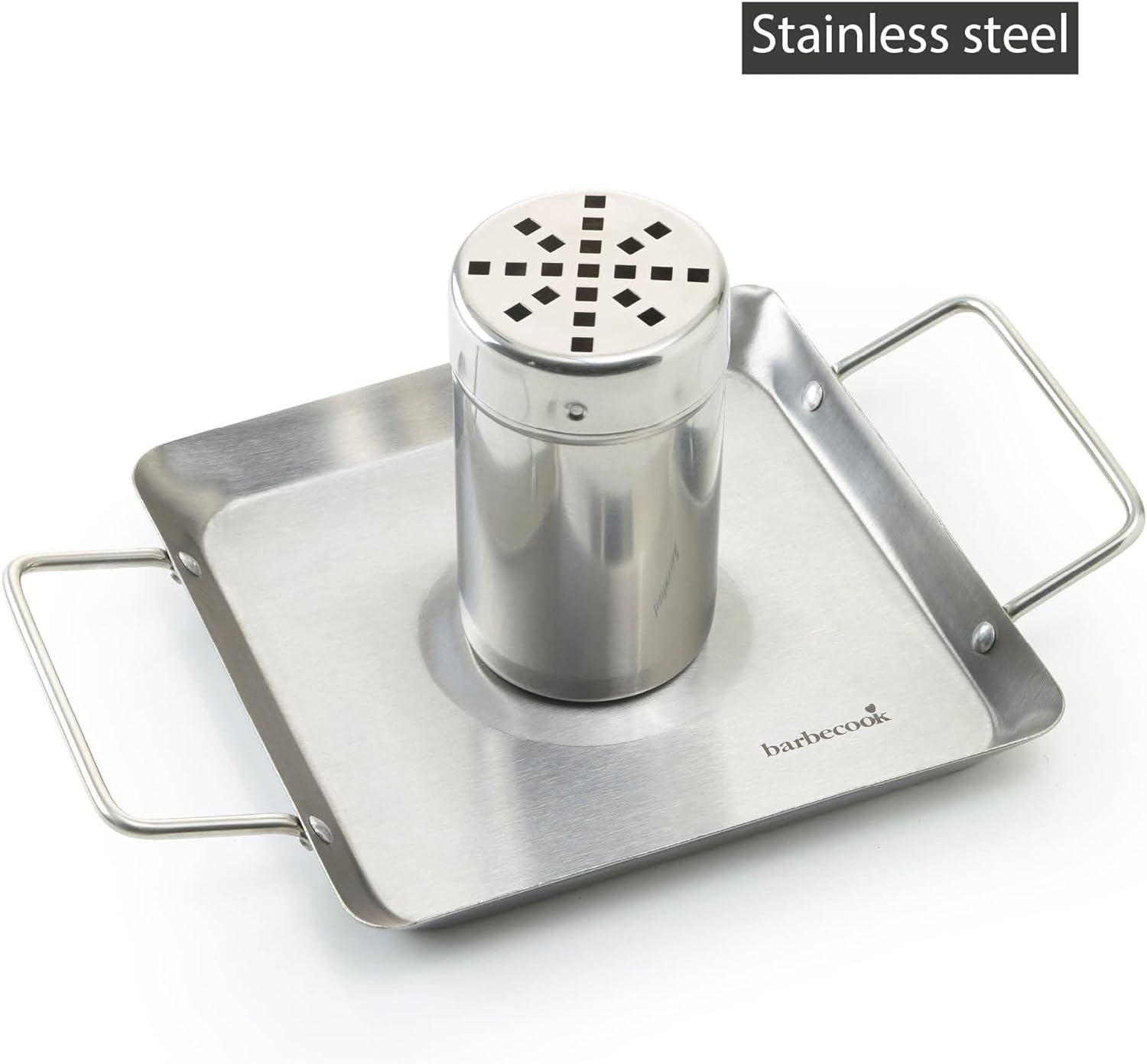 - Der Hähnchenhalter ist aus Edelstahl und besteht aus einer Schale für die Gewürze und einer rechteckigen Schüssel (27,5 cm x 18,5 cm), in die das Fett des Hähnchens abtropfen kann.
