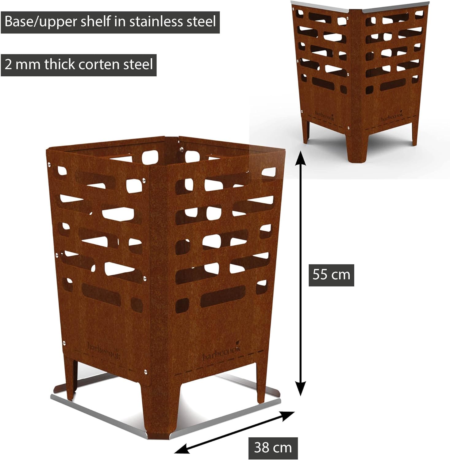 Barbecook Jill feuerschale, eckig, gartendeko rostoptik, Cortenstahl, 38 x 38 x 55 cm