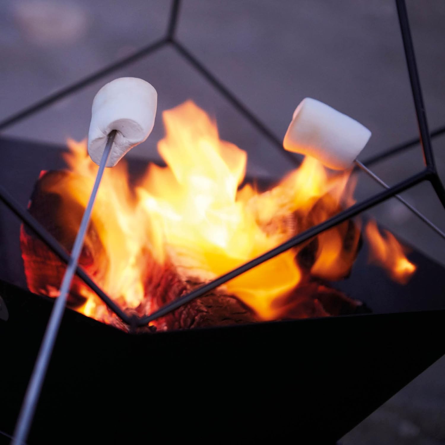 - Der Feuerkorb kommt in einem modernen, geometrischen Design daher. Der schwarz lackierte Stahlfeuerkorb wird zweifellos ein Blickfang auf jeder Terrasse sein.