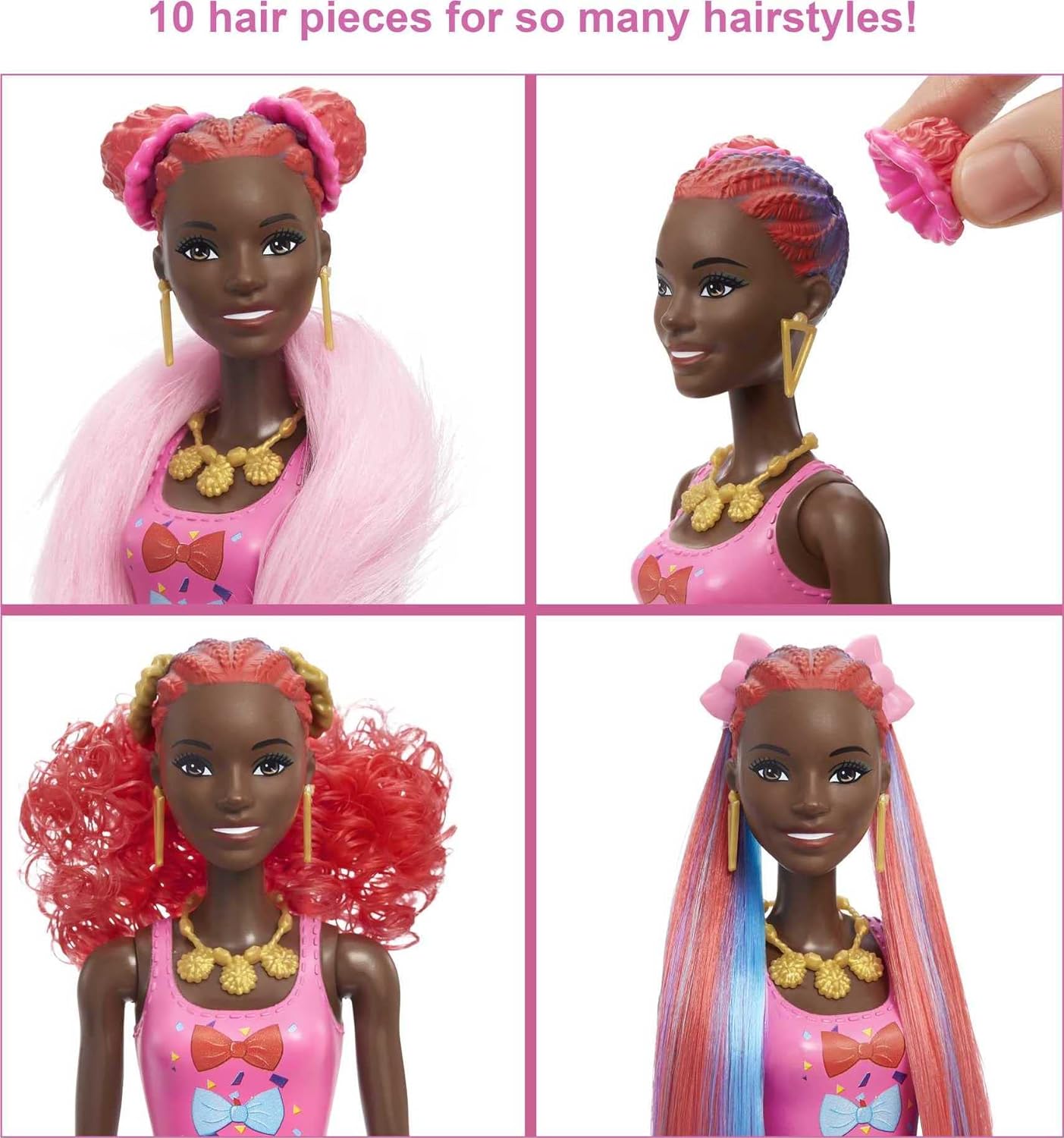 - Mit 25 Überraschungen in einer Packung, Barbie Color Reveal Glitzer, Die Haarwechsel Puppen bieten dank einer abwaschbaren Glitzerschicht und 10 ansteckbaren Haarteilen, die zu immer neuen Frisuren kombiniert werden können, den ultimativen Auspackspass