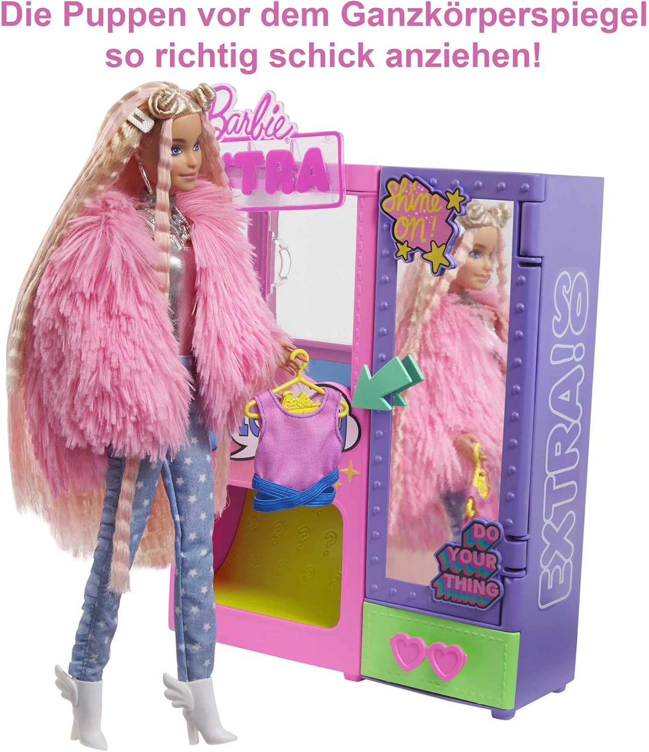 - Barbie HFG75 - Barbie Extra Mode Spielset mit 20 Teilen, einschliesslich Haustier Pudel, Schrank und Druckknopf-Funktion, die Mode-Accessoires ausgibt, Spielzeug Puppen Geschenk für Kinder ab 3 Jahren