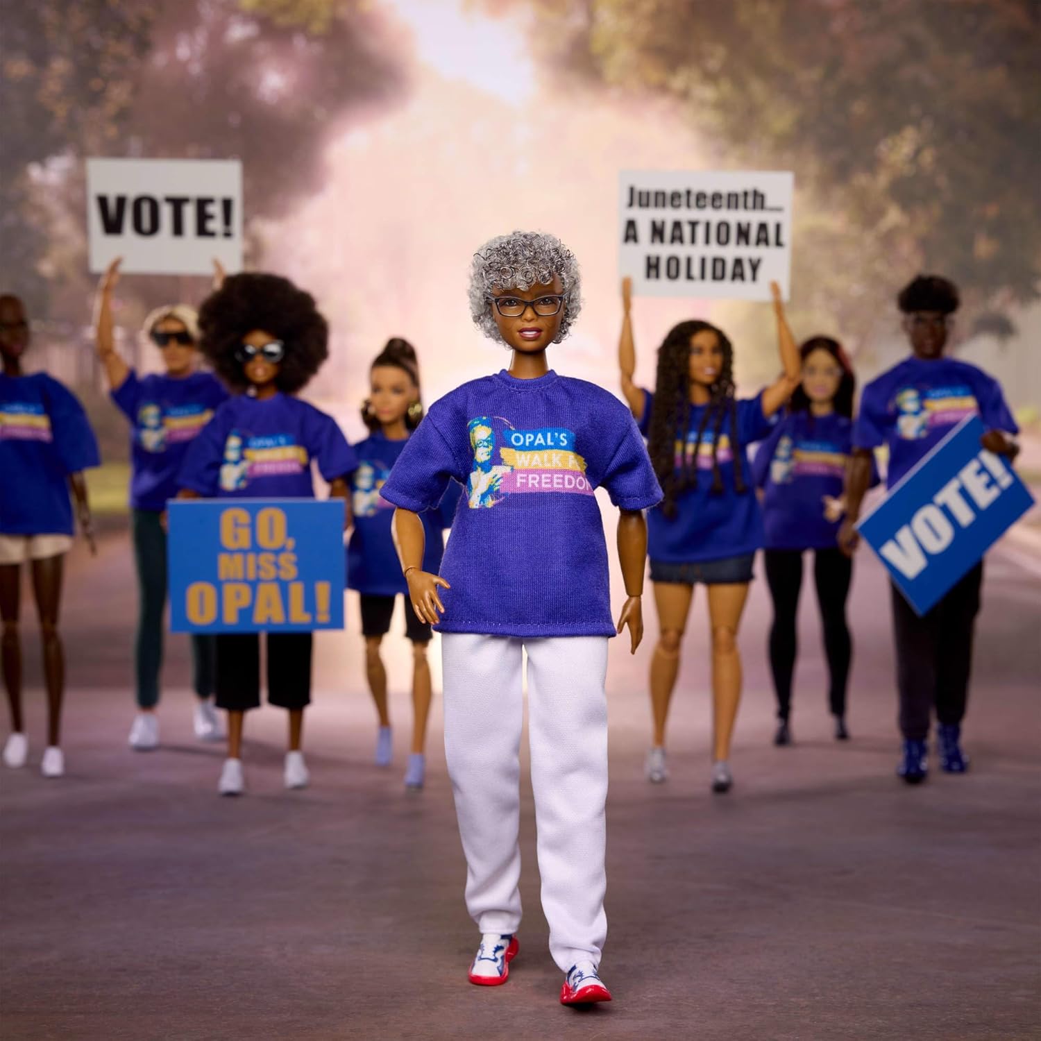 - Diese Inspiring Women Barbie-Puppe würdigt Opal Lee, die „Gründerin von Juneteenth“. Sie widmete sich als Lehrerin, Beraterin und Aktivistin innerhalb der Gesellschaft der Förderung positiver Veränderungen.