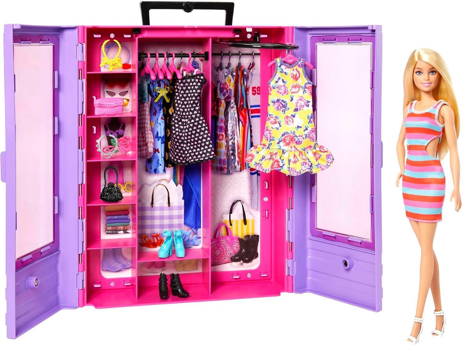 - Mit der enthaltenen Barbie-Puppe, der Kleidung und den Accessoires zeugt Barbies ultimativer Kleiderschrank innen und aussen von Stil