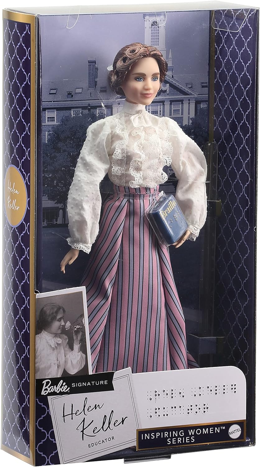 - Barbie ehrt Helen Keller, die erste taubstumme Person mit einen Bachelor of Arts, deren Errungenschaften als berühmte Schriftstellerin, Rednerin, Aktivistin und Fürsprecherin sie zu einem wundervollen Vorbild machen