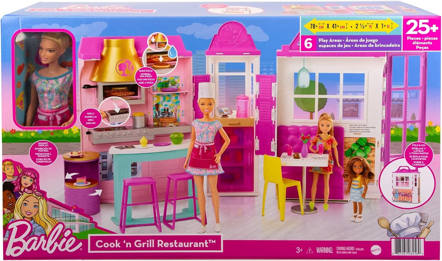 - Dieses Barbie Restaurant Spielset mit Puppe hat ein modernes Design, 6 Spielbereiche und über 30 Spielteile