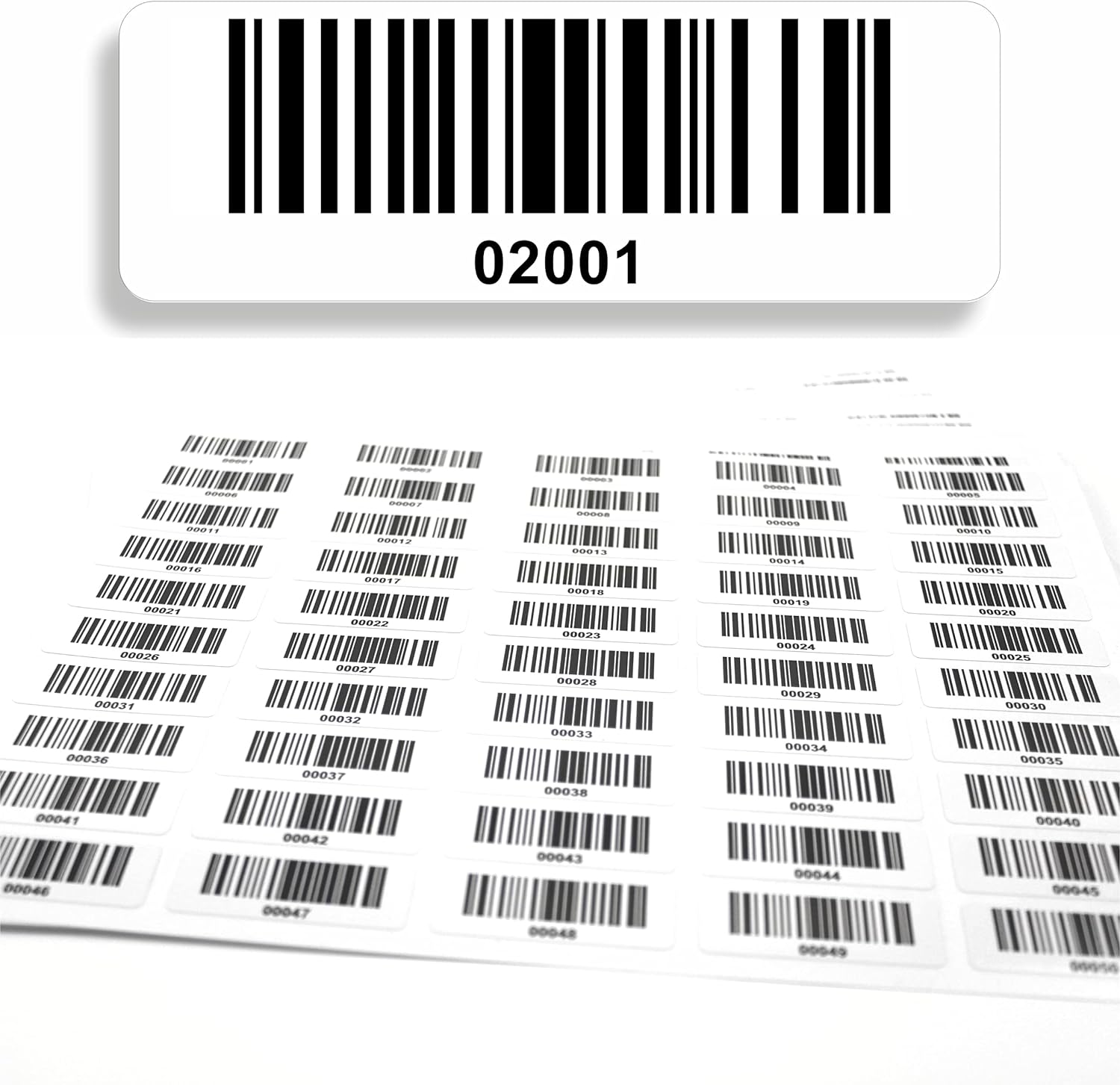 Barcodeetiketten 2001-3000 fortlaufend 5-stellig DGUV Prüfung Barcode Etiketten 1.000 Stck Strichcod