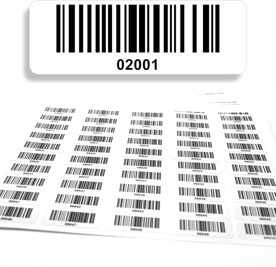 • Wetterfeste PVC-Barcodeetiketten mit fortlaufender Nummerierung