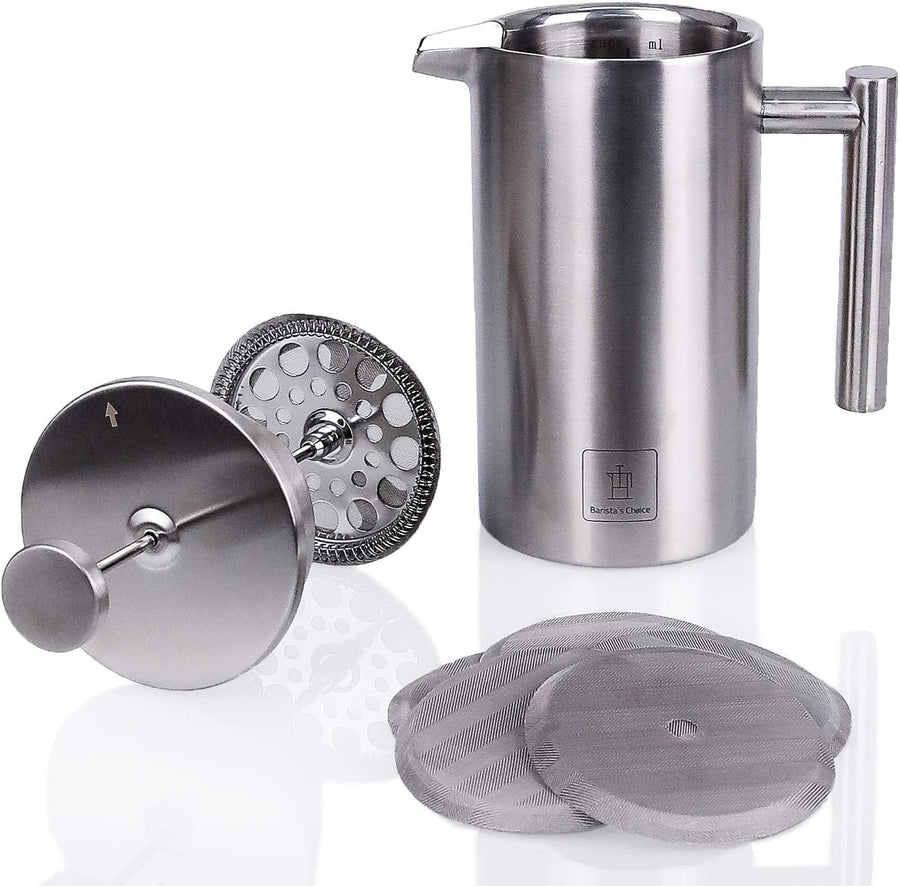 Barista's Choice French Press (max. 1 Liter) - hochwertiger Kaffeebereiter aus Edelstahl im edlen De