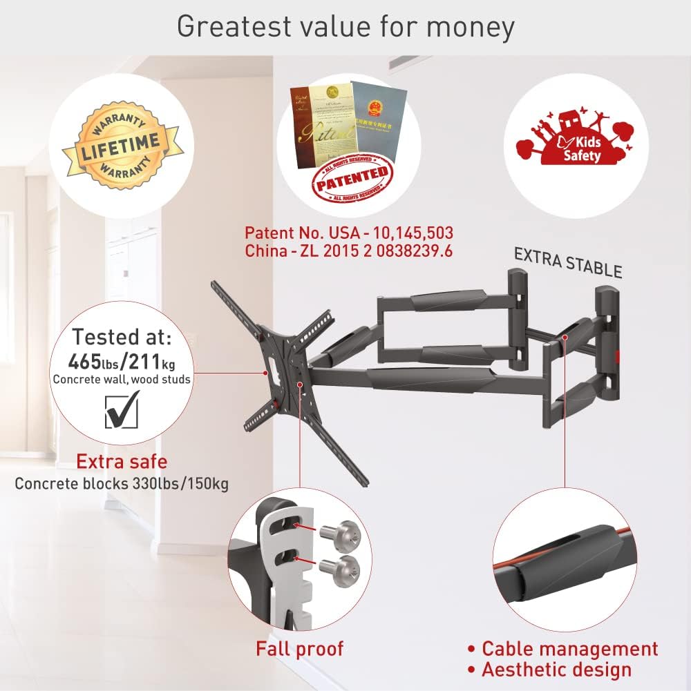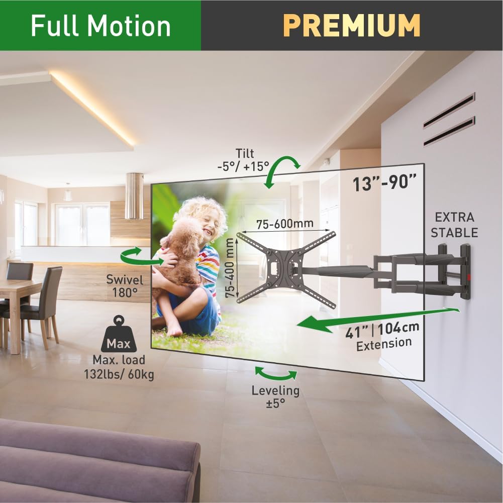 - ► OPTIMALER BLICKWINKEL - Unsere schwenkbare TV Halterung ist mit einer Neigung von einer Neigung von 0° - 15°, einer Schwenkbewegung von 180° für eine maximale Flexibilität bei der Betrachtung ausgelegt. Wählen Sie Ihren perfekten Winkel, um den