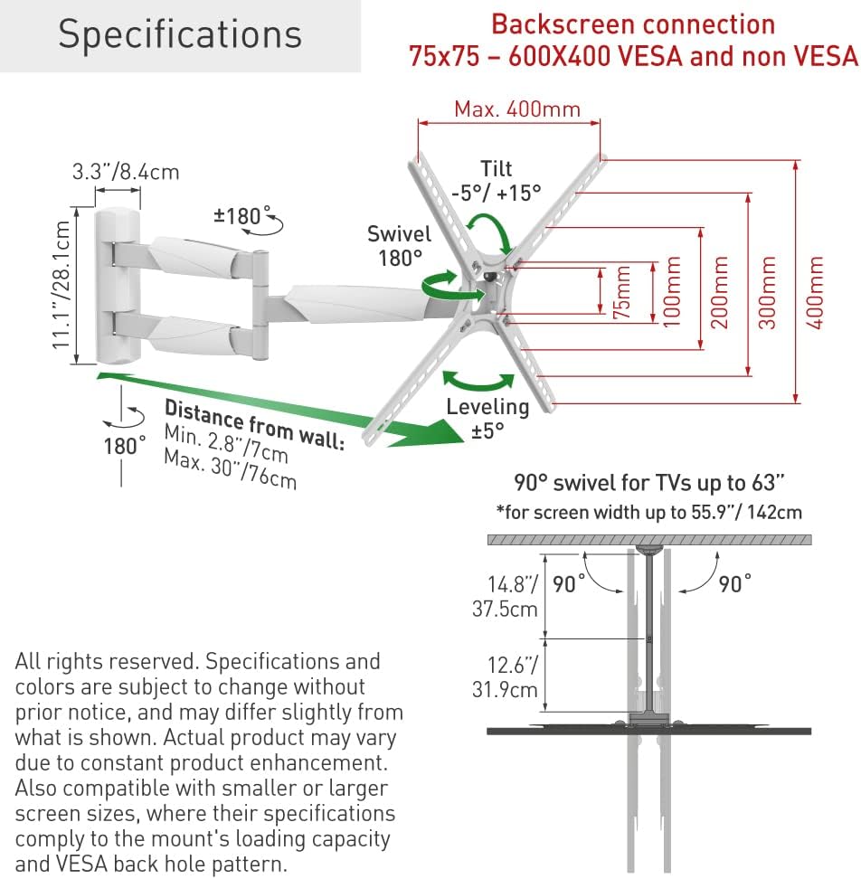 • ► SPART WERTVOLLEN PLATZ - Unsere universale TV Wandhalterung lässt sich in der Ausgangsposition hält bis 7cm zu der Wand zurückziehen, um Platz zu sparen, und lässt sich ebenfalls maximal 76cm von der Wand ausfahren. Dadurch sparen Sie wertvollen