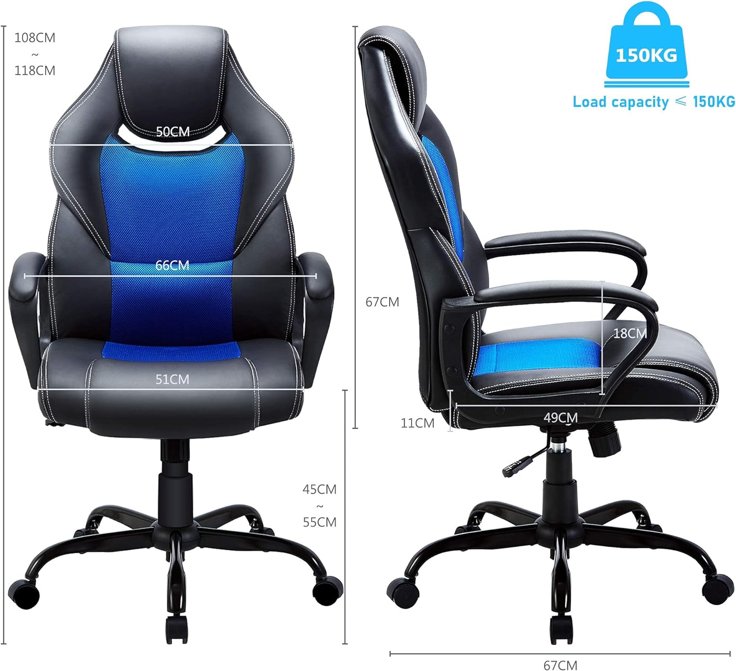 - Premium Qualität - BASETBL Bürostuhl alle Teile werden sorgfältig ausgewählt. Gaslift der Klasse 3 bestand die TÜV und SGS Zertifizieren. Die maximale Belastung von 150 kg und die robuste, robuste Metallbasis mit fünf Backen verbesserten die Sicherheit und Stabilität.