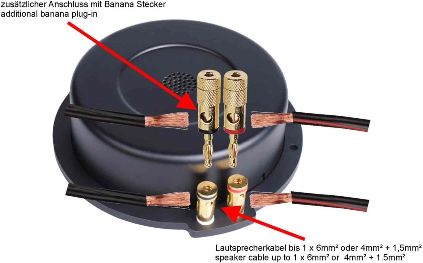 - Die dicken Polklemmen nehmen Kabel bis 4mm² auf und Bananastecker. Empfehlenswerte Verstärker sind der RECKHORN A-409 mit sehr umfangreichen Regelungen oder der A-800 mit der Möglichkeit, bis zu 6 Bass Shaker anzuschliessen. Die Unterseite muss plan