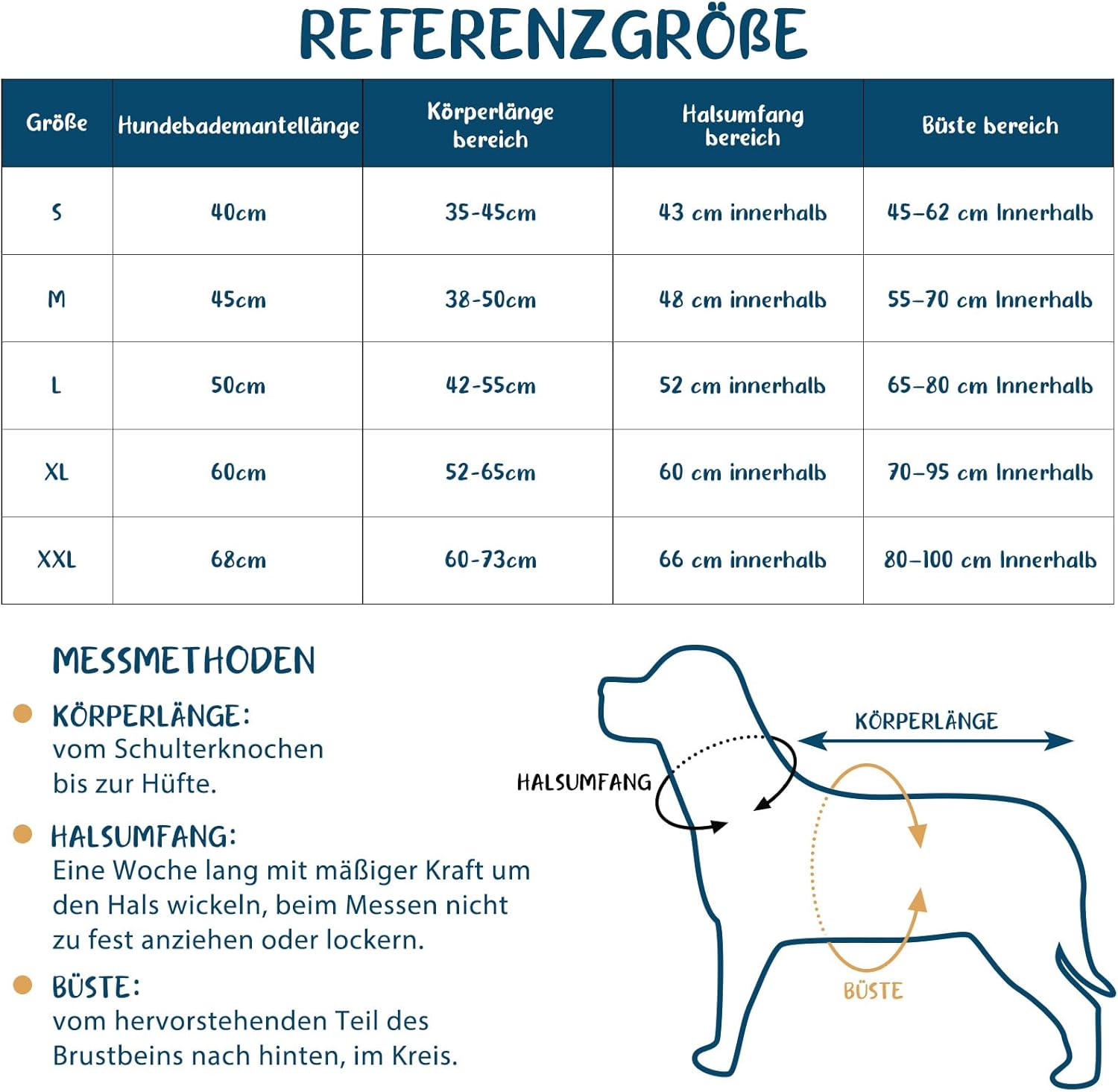 - DIE RICHTIGE GRÖSSE: Unsere hundebademantel sind alle gross genug, Umhüllt Ihren Hund und sorgt für ultimativen Hundekomfort. Bitte sehen Sie sich die Grössentabelle in der Produktbeschreibung an oder kontaktieren Sie uns, um herauszufinden, welche