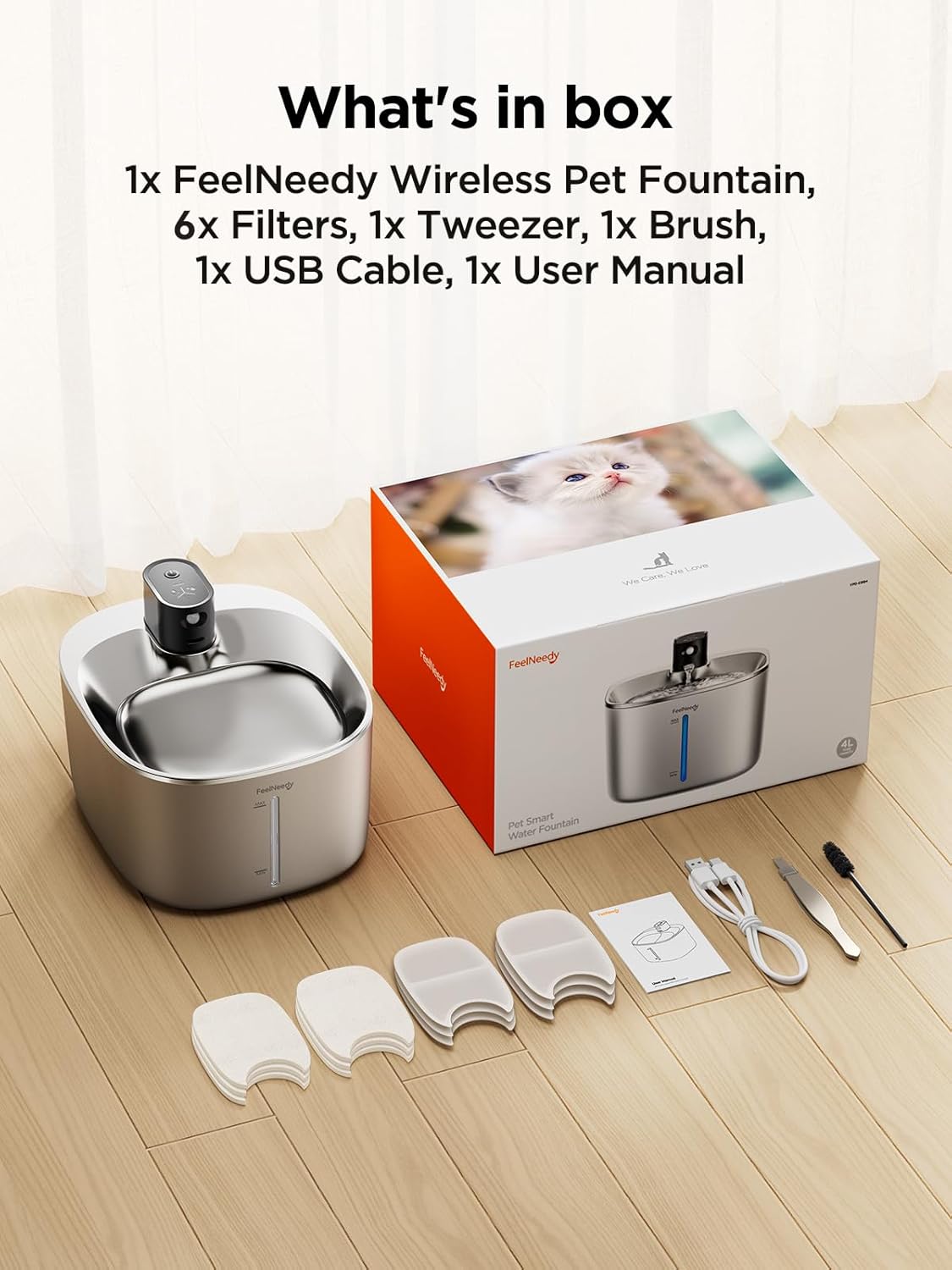 - Katzenbrunnen extra leise: Flüsterleise Pumpe Sie und Ihre Fellnasen werden friedlich schlafen, auch wenn der FeelNeedy Katzentrinkbrunnen direkt neben Ihrem Bett steht. Die fortschrittliche Pumpe arbeitet mit einem Geräuschpegel von nur 35 Dezibel und