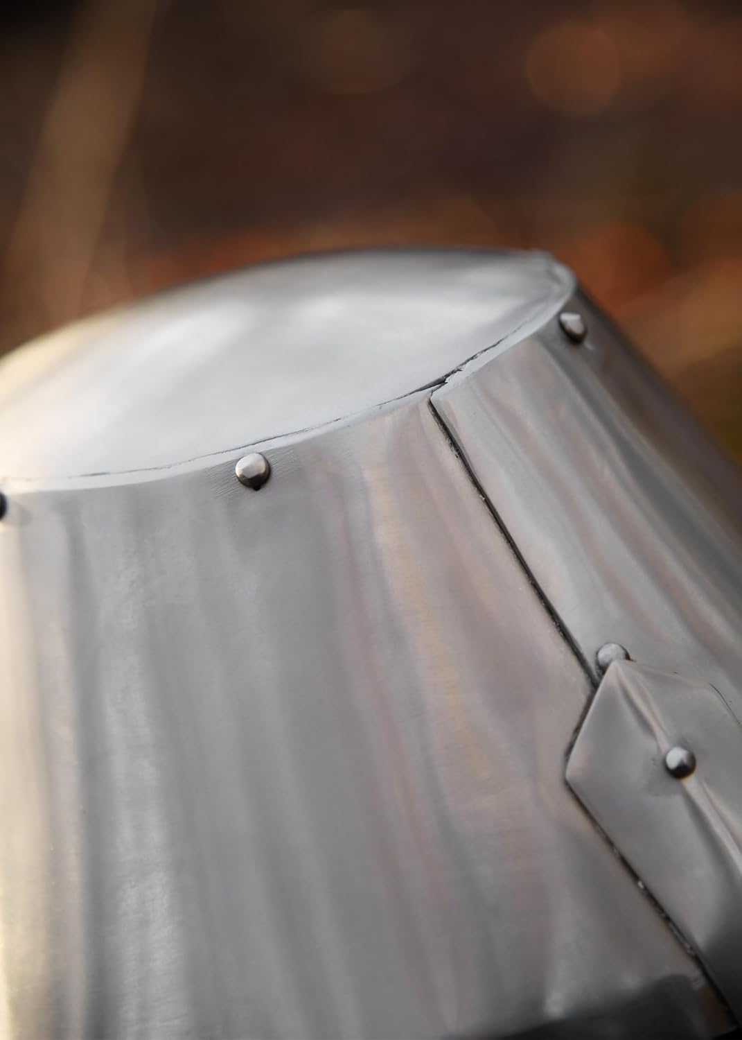 - Hutgrösse bis 63 cm geeignet. - Langer Innenabstand (Hinterkopf-Stirn): ca. 23 cm - Kurzer Innenabstand (Ohr-Ohr): ca. 19,5 cm - Material: 2 mm Stahl; Leder - Augenausschnitt ca. 2,3 cm x 9,0 cm - Finish: poliert (eingeölt) - Gewicht: ca. 3,0 kg