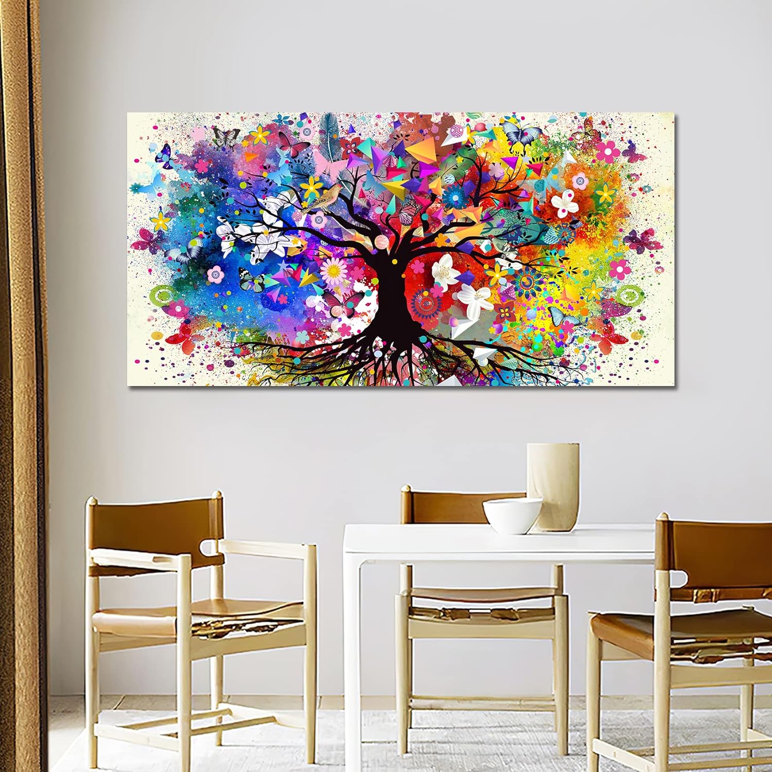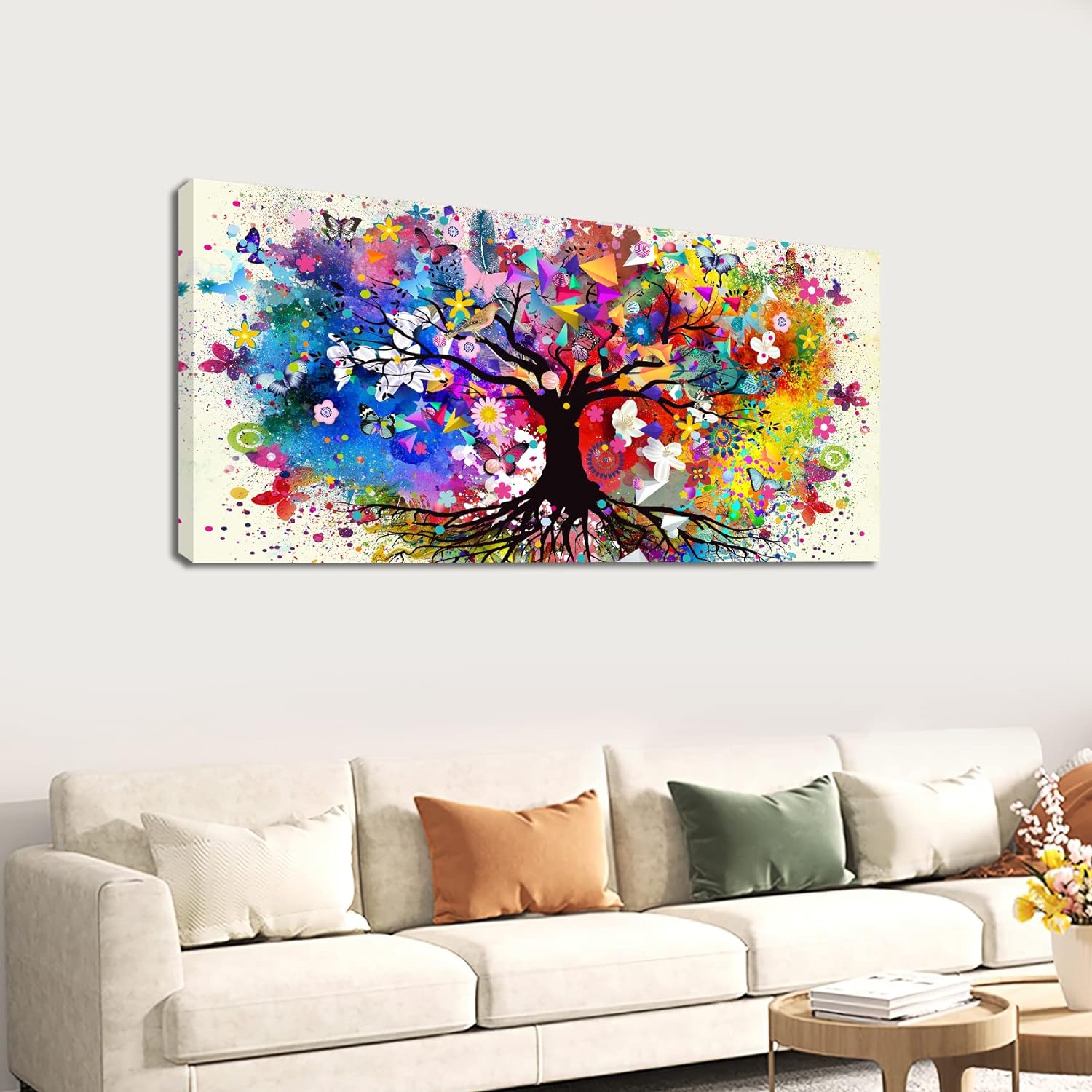 Baum des Lebens Mit Rahmen Leinwand Bilder Schmetterling Blumen Vögel Wandkunst Leinwand Malerei Pos