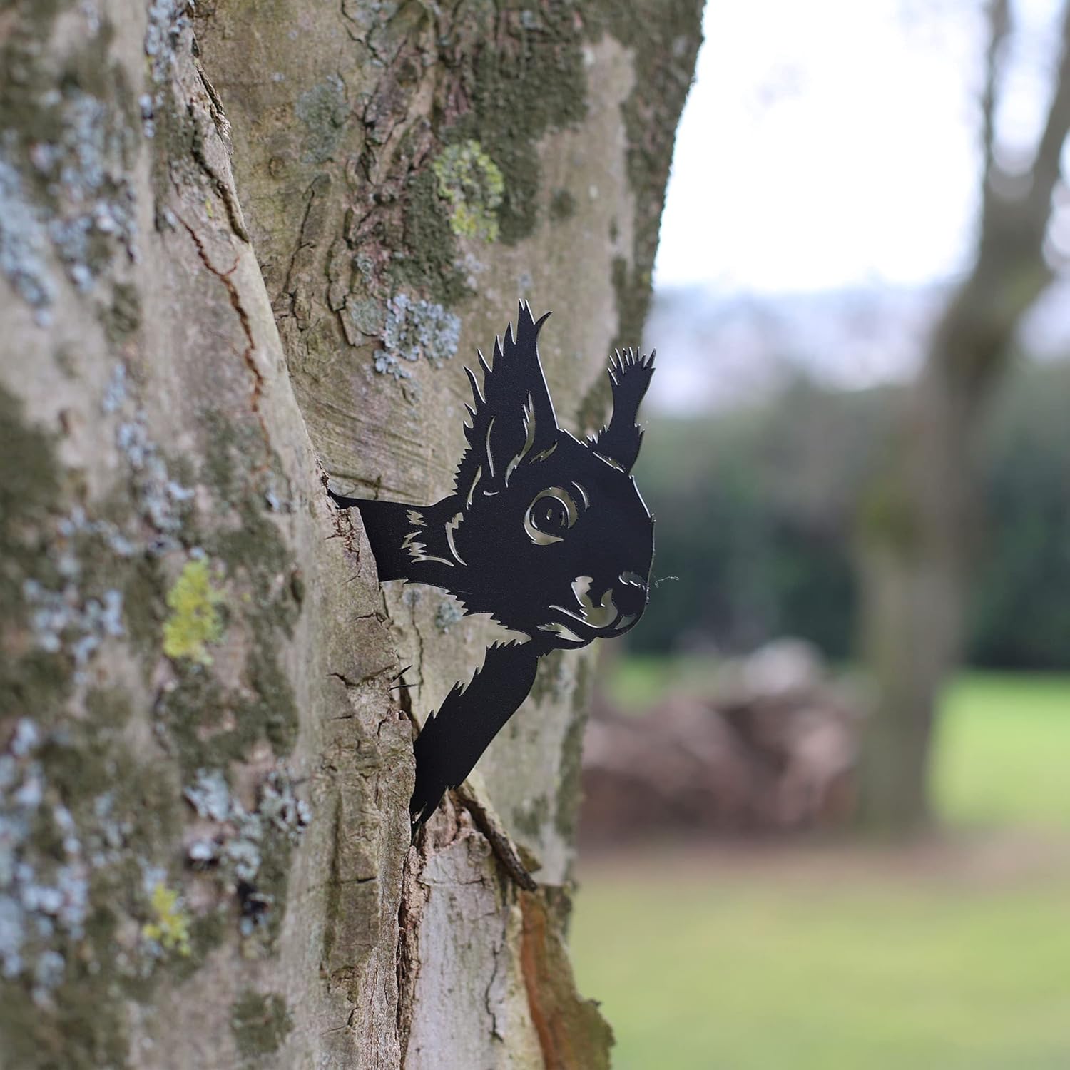 - 🌦️ WETTERRESISTENT - Mattschwarze Pulverbeschichtung. Ausgezeichnete Verarbeitung. Unser Neugieriges Eichhörnchen ist das perfekte Accessoire, um einen alten Baumstamm oder ähnliches im Aussenbereich zu schmücken.