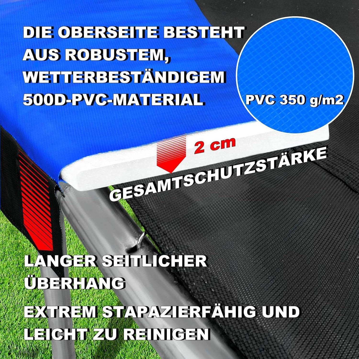 • Langlebig und höchste Sicherheit: Diese Randabdeckungen für Trampoline, haben eine dicke Schutzpolsterung, gute verstärkte Materialeigenschaften (500D PVC 350g/m2 oben, PE 130g/m2 unten, UV-beständig) und eine durchdachte Befestigung