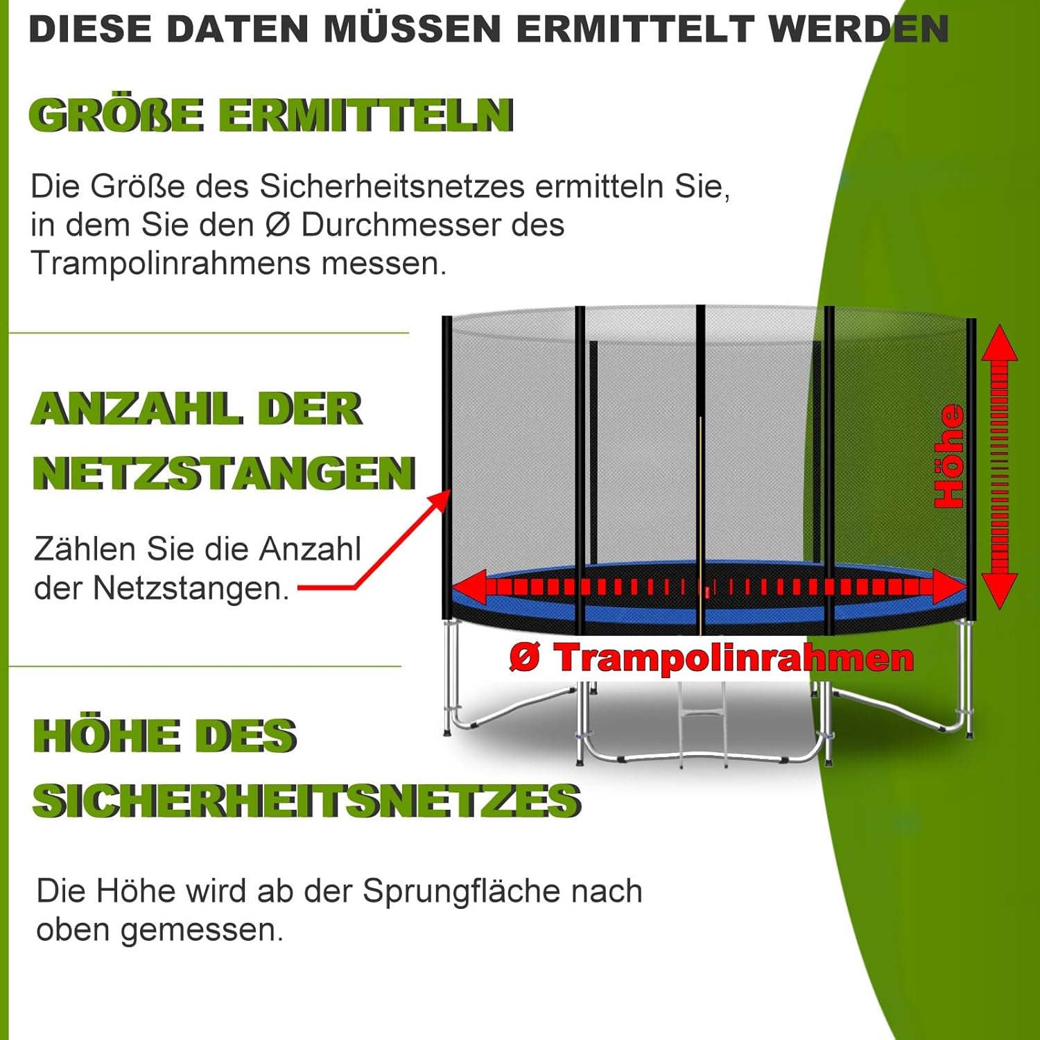 - Lieferumfang: Sicherheitsnetz 1 Stück (Das Sicherheitsnetz ist aussenliegend für Trampoline wie bildlich Dargestellt) (Suchen Sie Ersatzteile für Ihr Trampolin und finden keine? Wir können versuchen Ihnen Ihre benötigen Ersatzteile zu produzieren!)