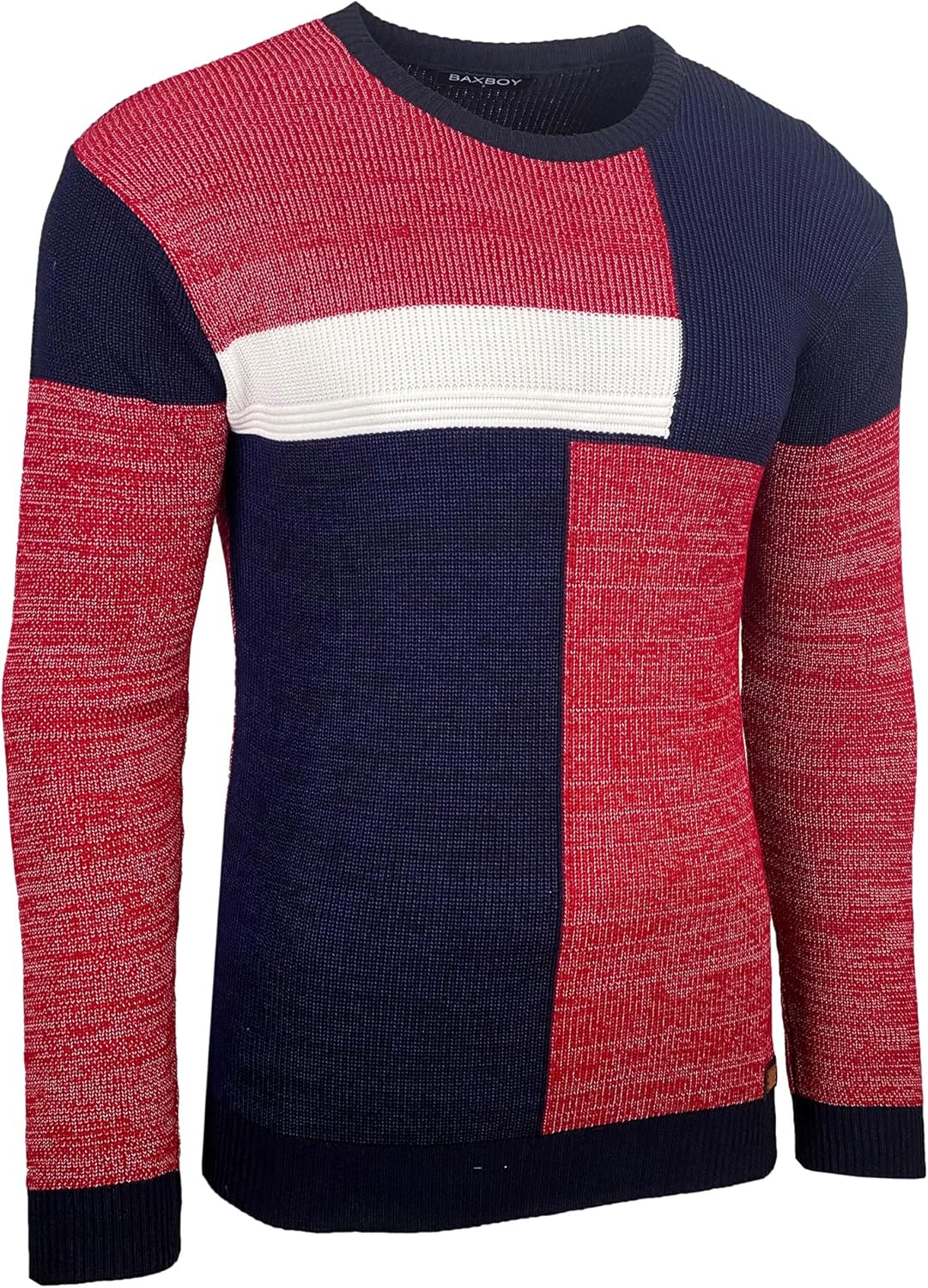 Baxboy Herren Pullover Slim Fit Rundhals Strick-Pullover Rundkragen Moderner Männer schwarzer Pulli